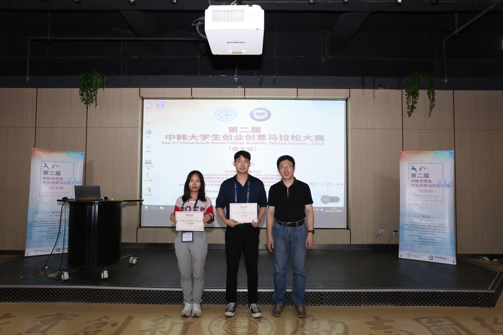 2017级本科生黄山和汉阳大学学生HUR KYESUN组成的“自然人”组获得一等奖,SCAN ME.组、UNI Care 组分获二、三等奖,世界锅包肉组、Boom组获得优秀奖。