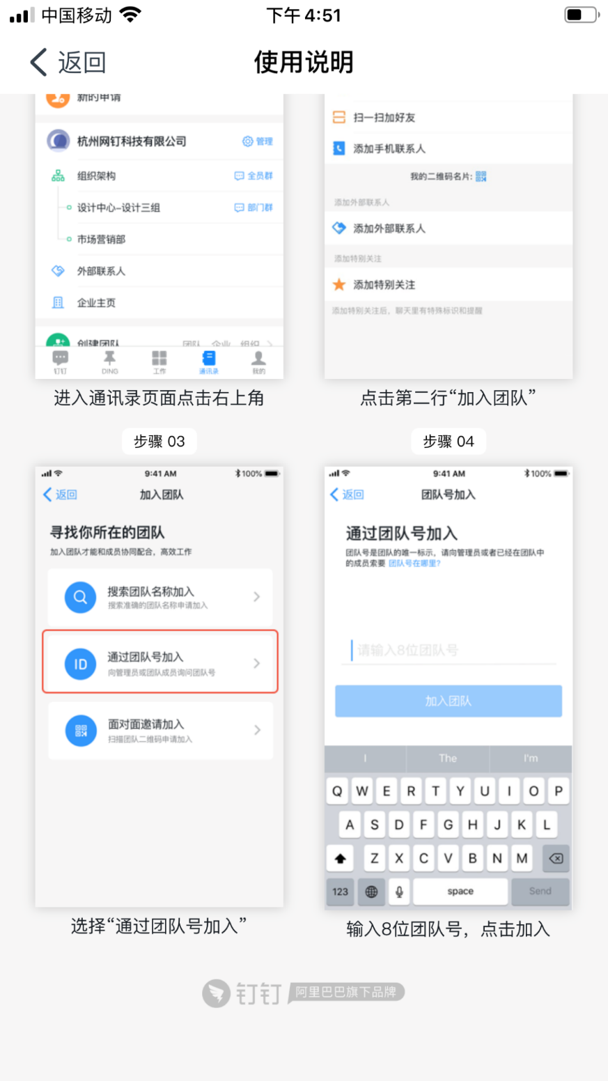 下载 “钉钉”,首先需要加入到课程班中,本课程班的团队号为: PBXE3231。团队名称:成人抖音