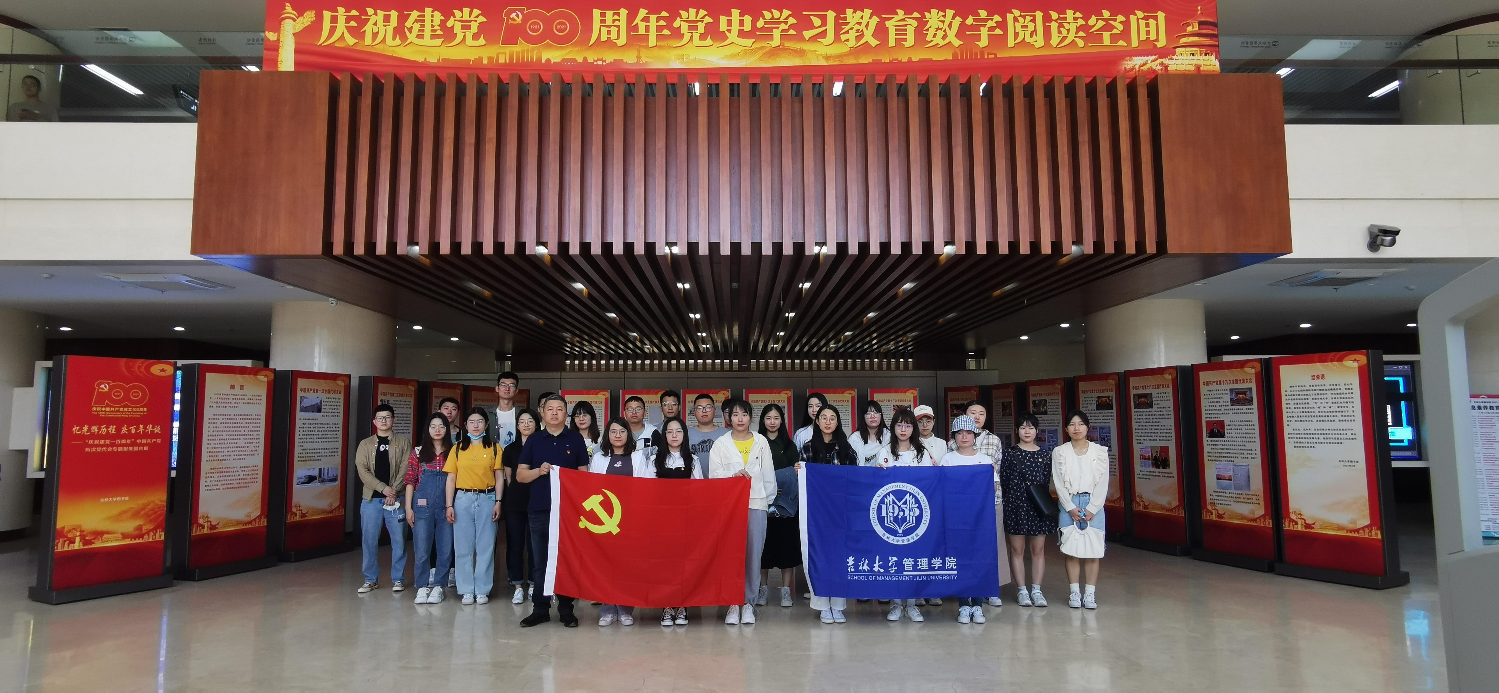 机关教工党支部与研究生党支部联合开展“学党史、知校史”活动,共同参观鼎新图书馆“庆祝建党一百周年”中国共产党历次党代会专题报纸图片展、成人抖音