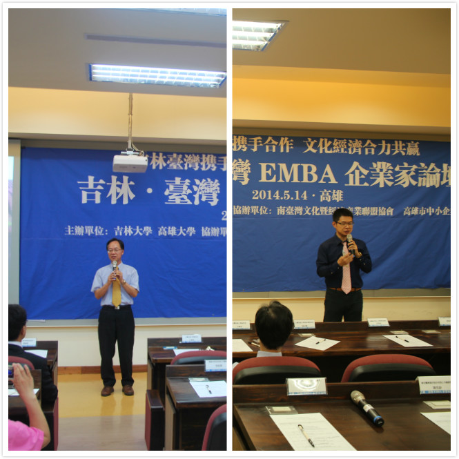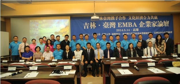 吉林·台湾EMBA企业论坛于2014年5月14日下午1点在国立高雄大学管理成人抖音 隆重举行,出席此次论坛的嘉宾有国立高雄大学副校长王学亮、国立高雄大学管理成人抖音 院长陶幼慧、国立高雄大学EMBA教育中心主任翁铭章、南台湾文化暨经济产业联盟协会副理事长梁中铭、国立高雄大学亚太工商管理学系李亭林教授、高雄市中小企业协会顾问胡以祥、高雄市首都青年企业研究社社长杨映国、国立海洋科技大学副教授黄贵民、成人抖音 管理成人抖音 副院长巩顺龙、成人抖音 管理成人抖音 EMBA教育中心副主任张公一,以及高雄市EMBA代表、成人抖音 管理成人抖音 成人抖音 2013级EMBA、国立高雄大学师生共计100余人。