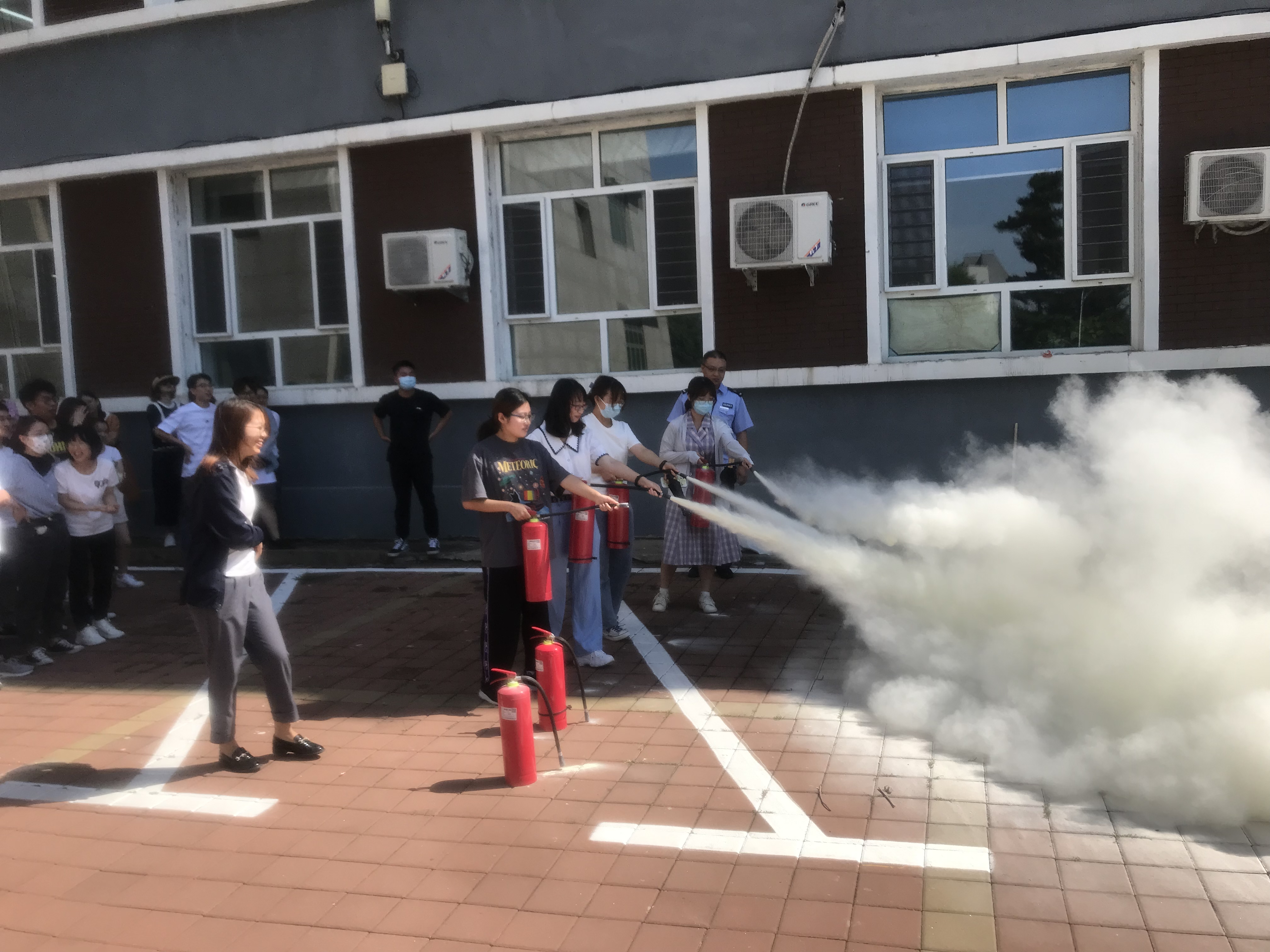 上午11:00,在管理楼前,东区保卫办消防科韩旭老师结合演练过程中的一些现象,为师生讲解了火灾逃生的方法及注意事项,并现场示范了灭火毯、灭火器的使用方法,现场师生也积极参与,实地演练正确的灭火方法。
