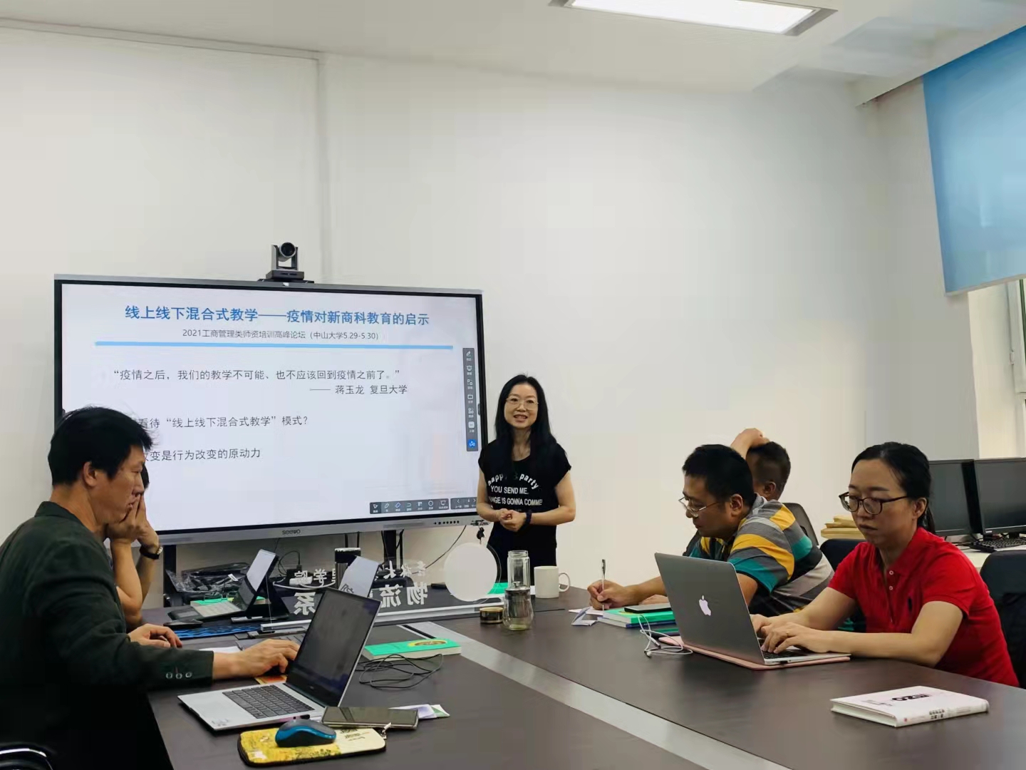分享环节,王杏老师就此前参加的“线上线下混合式教学——疫情对新商科人才培养的启示”培训进行了汇报交流。以“疫情之后,我们的教学不可能、也不应该回到疫情之前了。”开篇(引自复旦大学蒋玉龙教授),王杏老师分享了席酉民(西交利物浦大学执行校长)、张新民(对外经贸大学原副校长)、魏江(浙江大学管理成人抖音