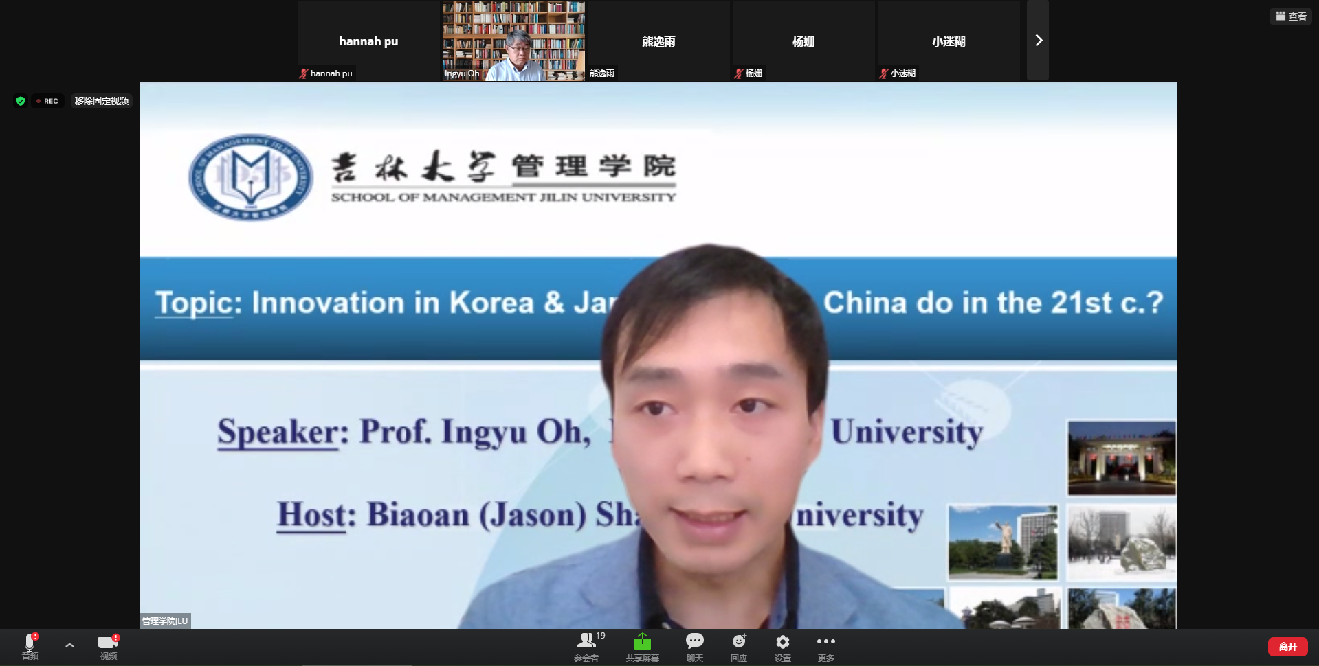 师生作题为《Innovation in Korea and Japan: What can China do in the 21st century?》的学术报告,报告采取线上形式,由技术经济及管理系单标安副教授主持此次学术报告。