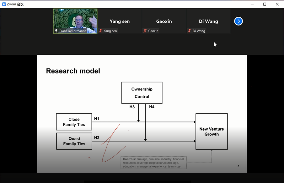 师生作题为《How to work on a research — Family Ties in New Venture Teams》的学术报告。本次报告通过ZOOM平台采取线上形式进行,报告共分为三个部分。