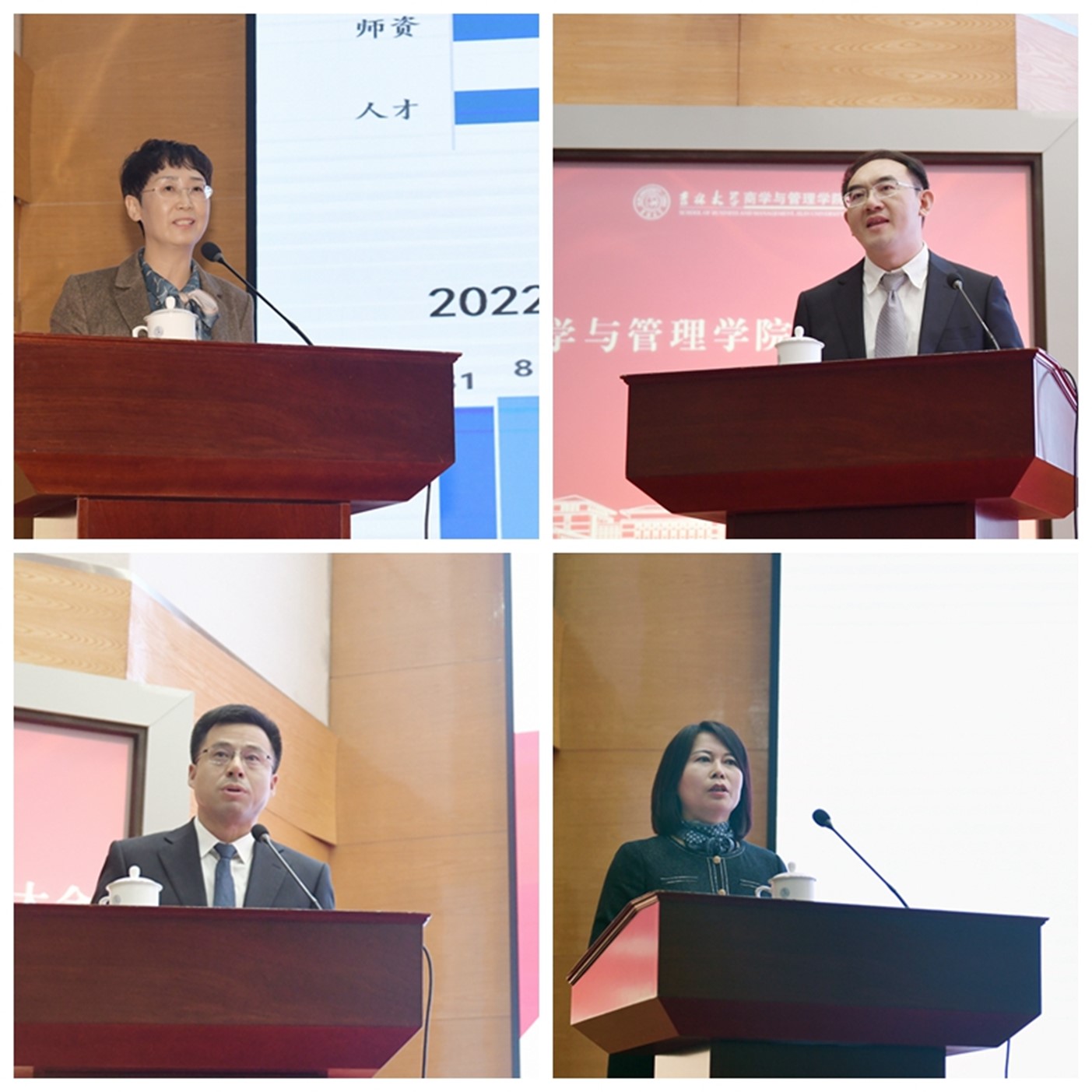 学科、师资、人才、研究生培养、本科生培养、MBA工作、科研工作、国际化工作、国内合作工作和财务工作情况向各位老师进行了汇报,明晰了2023年各项工作的目标、路径。