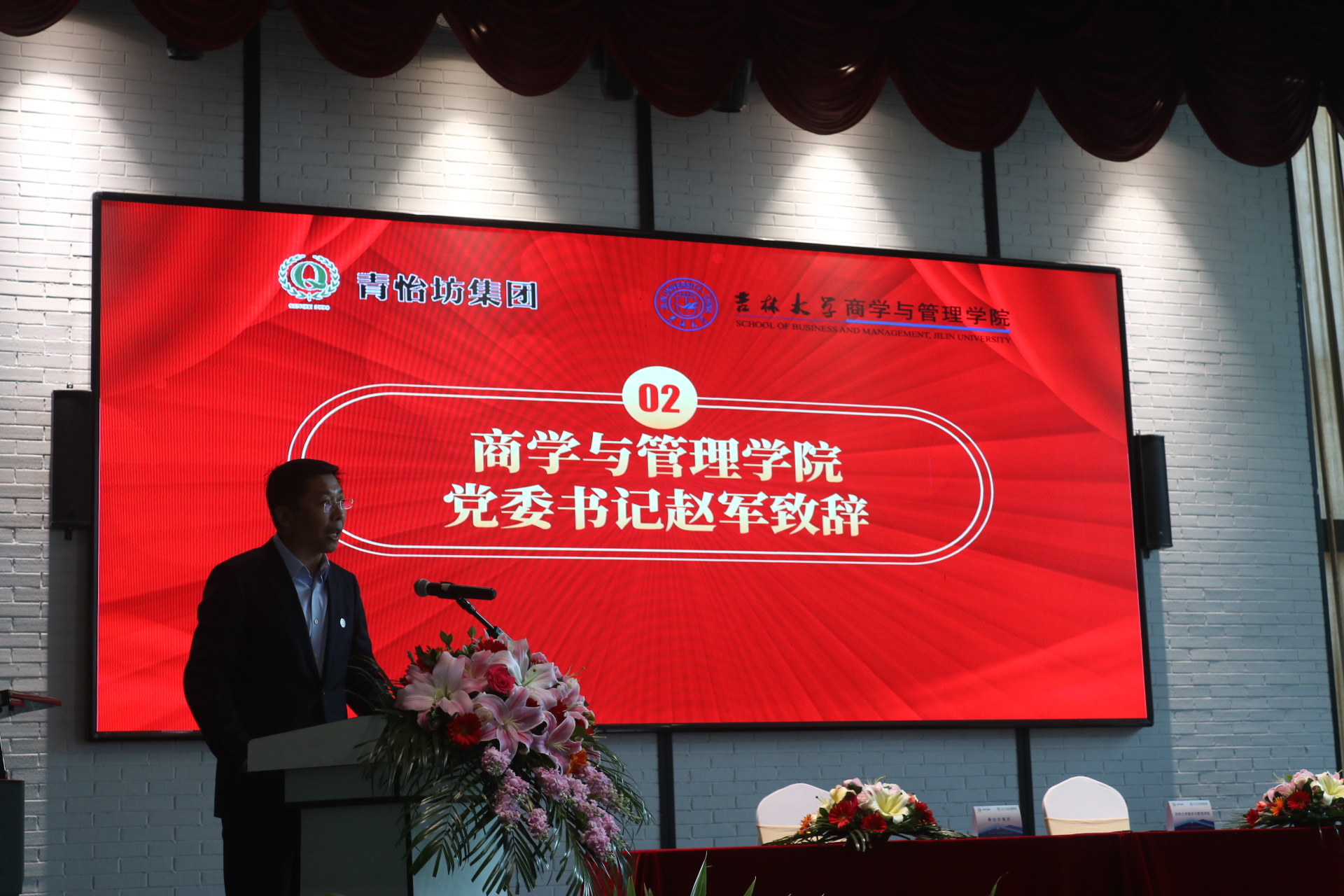 党委书记赵军、党委副书记兼副院长李帅、党委副书记马腾、青怡坊集团商业地产总经理李悦、商业公司总裁潘卫华以及辅导员和部分学生代表出席了本次揭牌仪式。