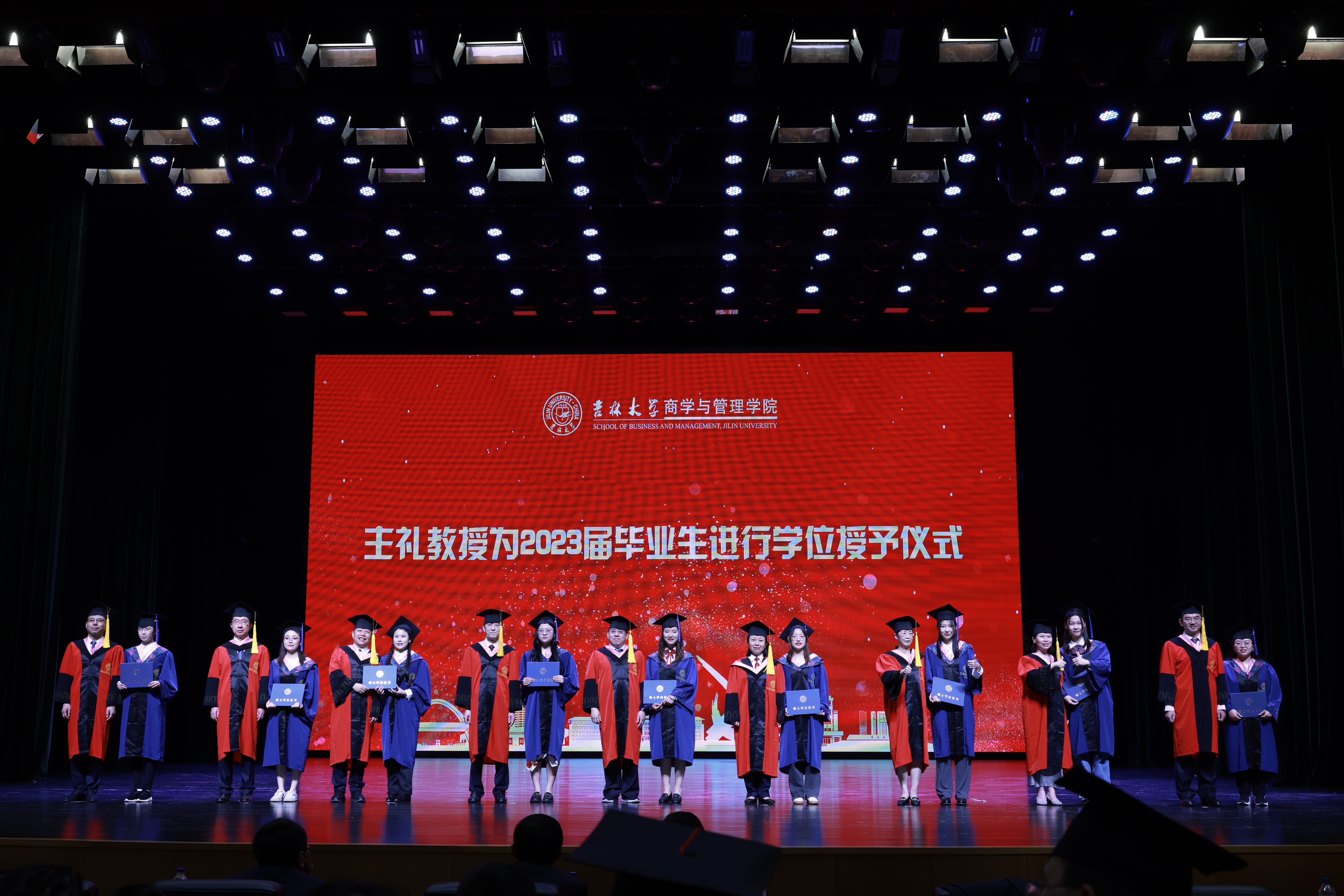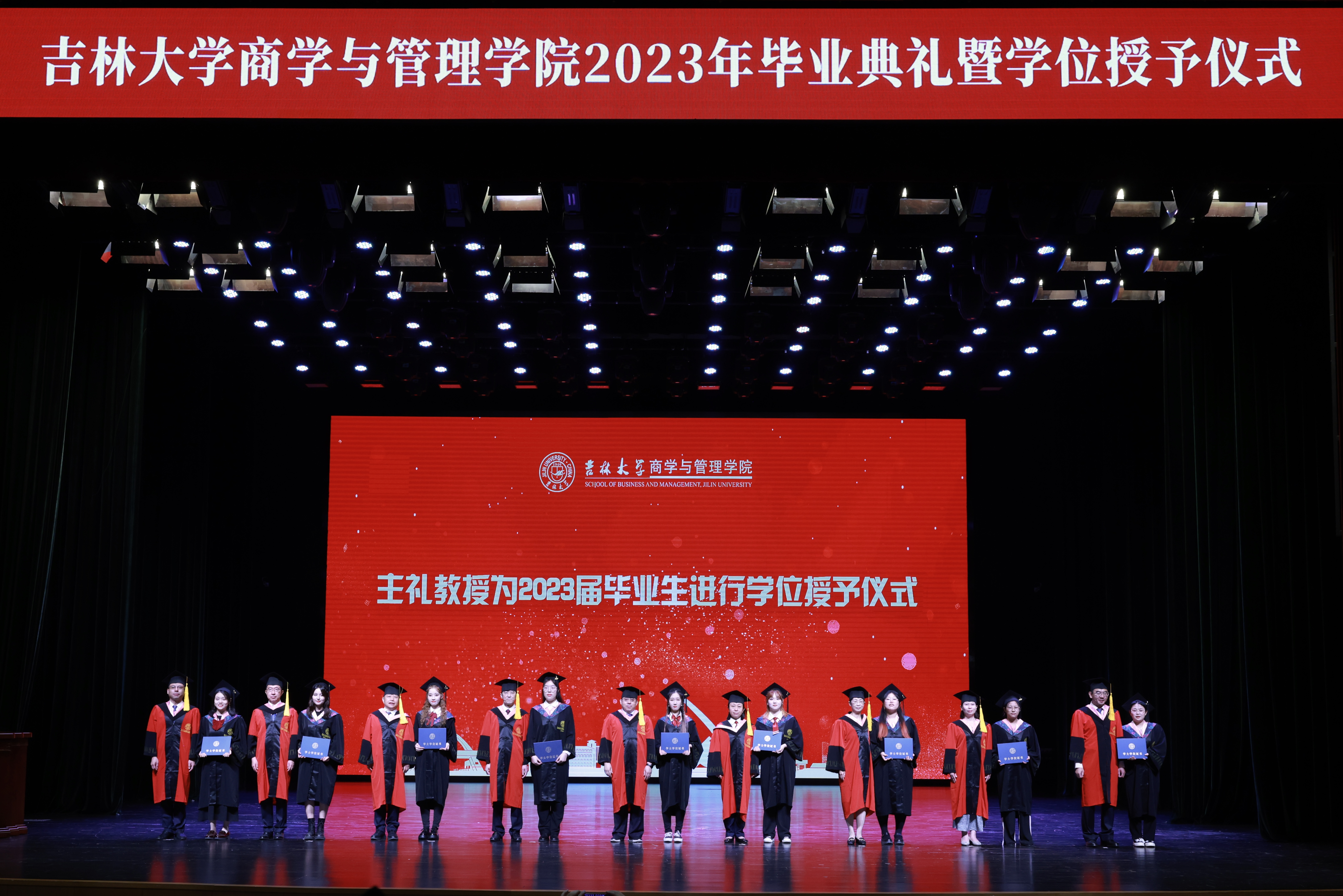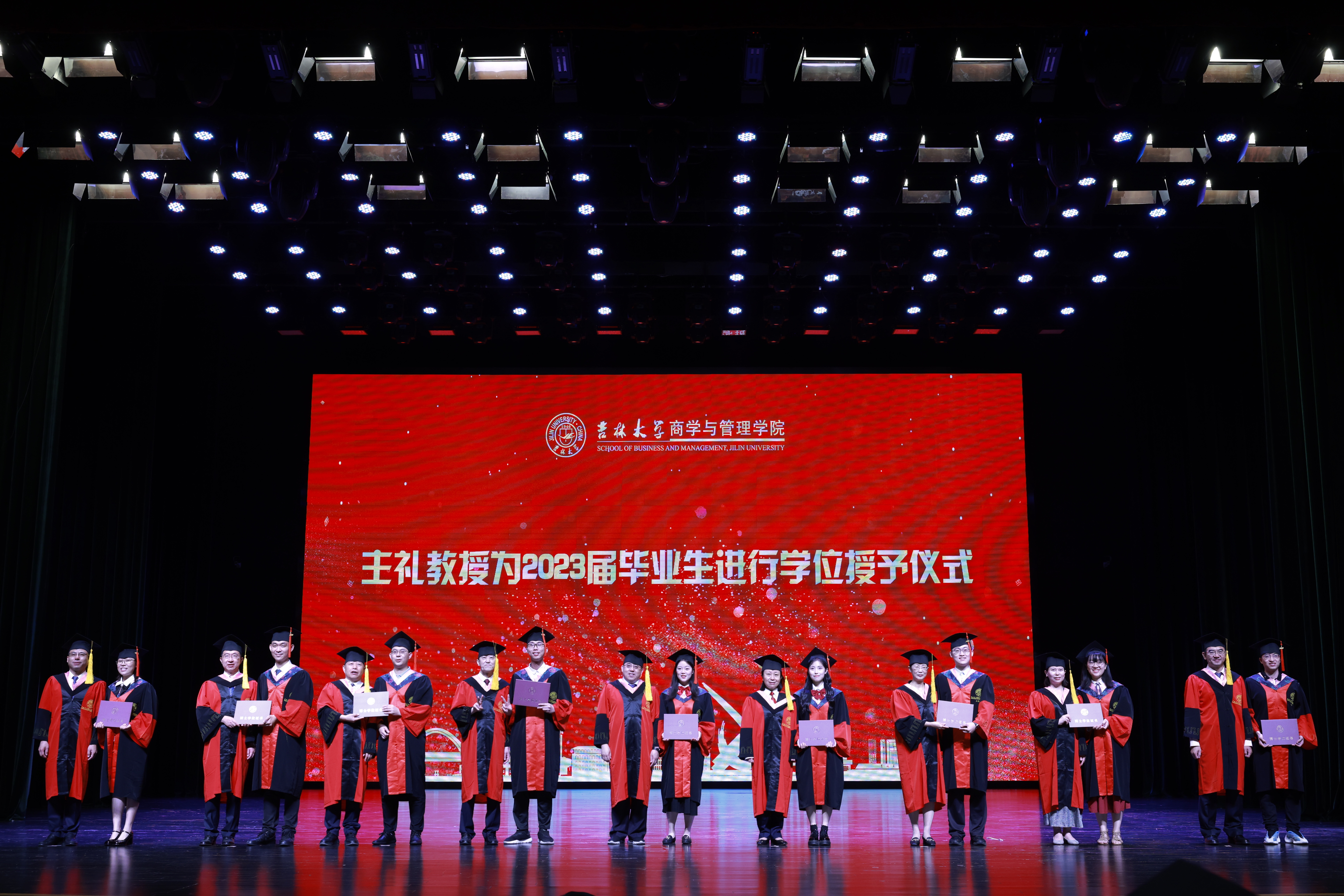 常务副院长张世伟教授、数量经济研究中心主任孙巍教授、副院长樊雪梅教授、副院长辛本禄教授、副院长郭英彤教授、副院长隋建利教授、副院长李雪灵教授、副院长马捷教授、副院长张公一教授依次为2023届毕业生和2020、2021、2022届毕业生代表授予学位。