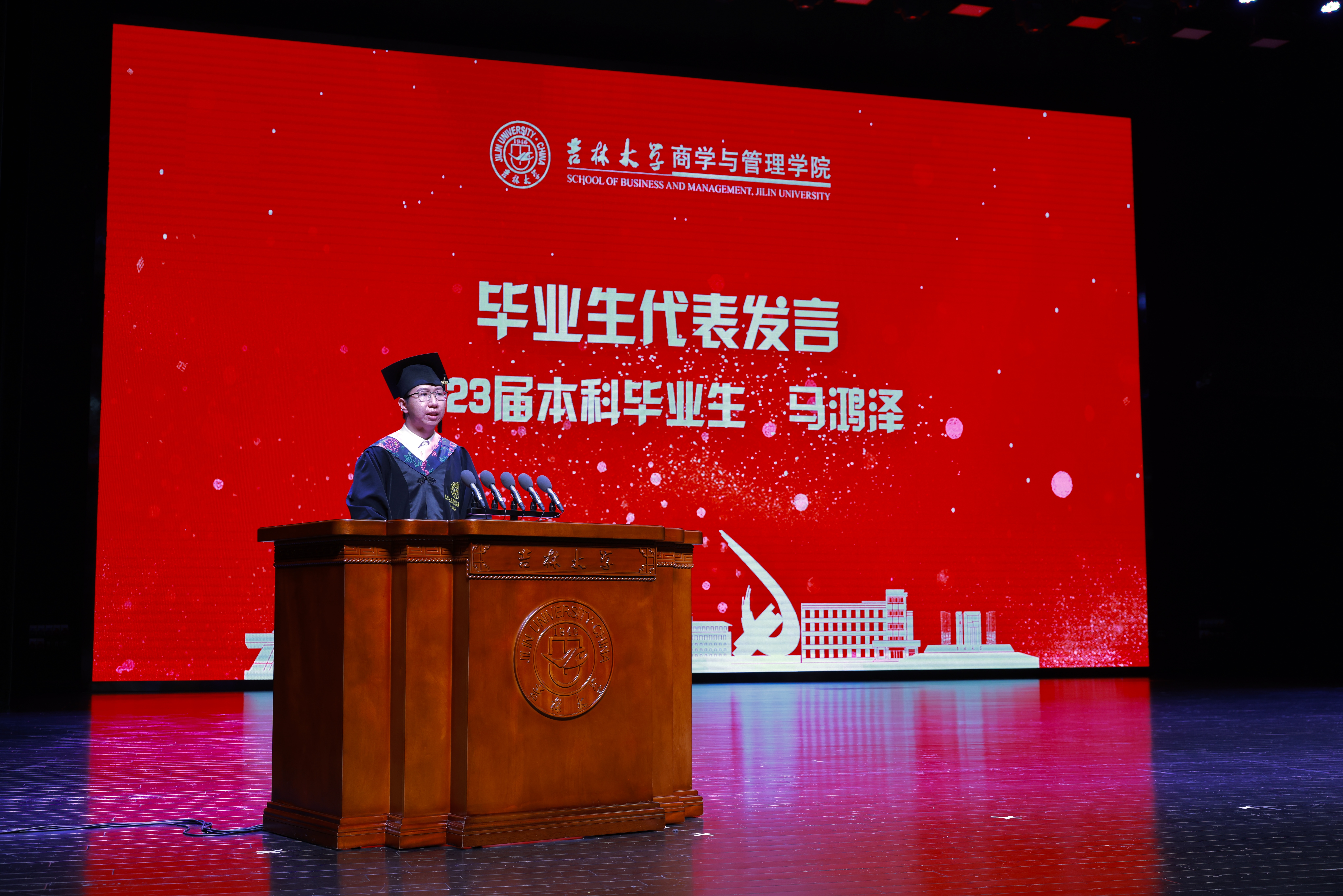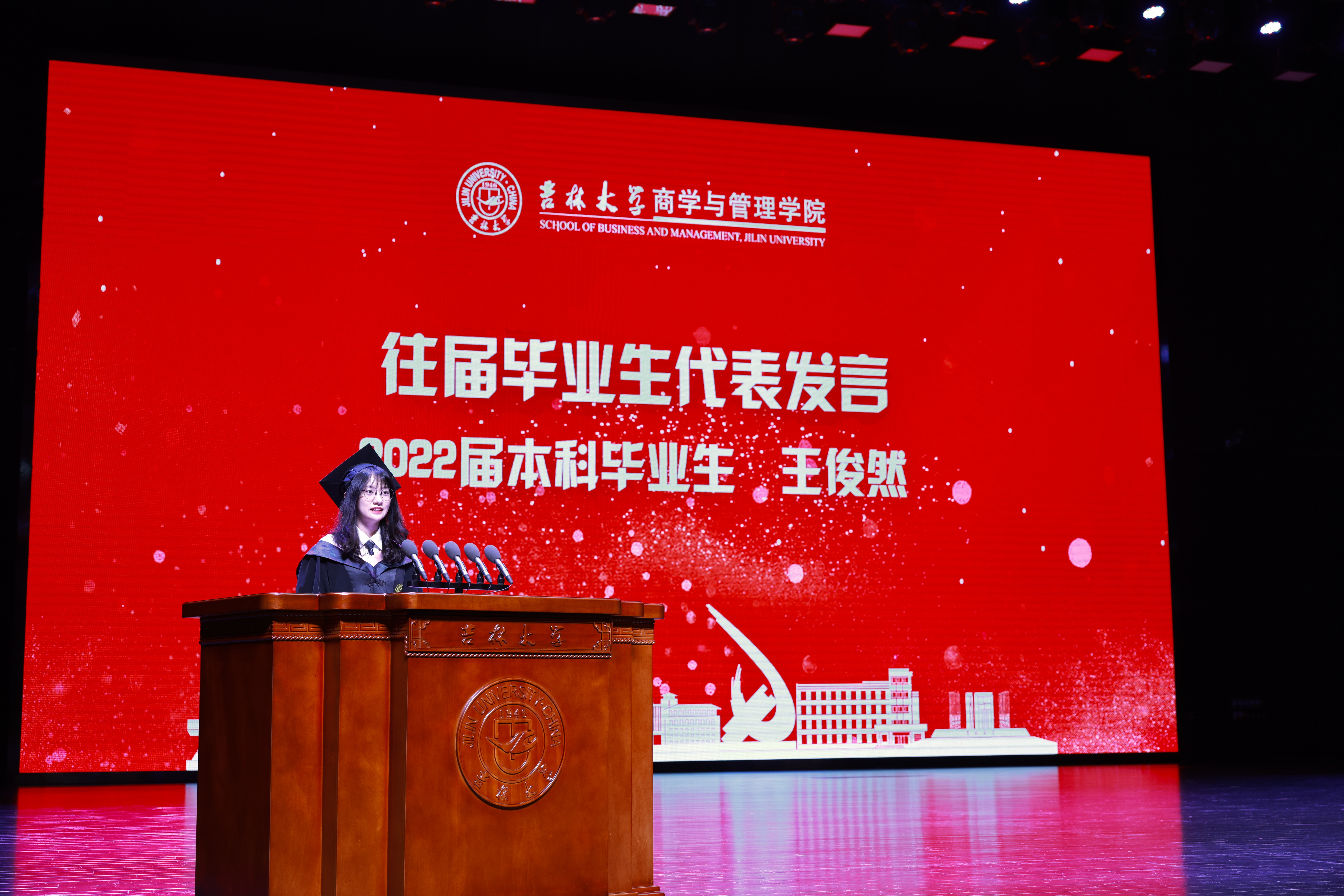 典礼上,往届毕业生代表、2022届财务管理本科毕业生王俊然进行了发言。王俊然同学回顾校园生活,深切表达了对母校的怀念与不舍,展望未来,她希望在以后的工作与生活中继续秉承成人抖音
