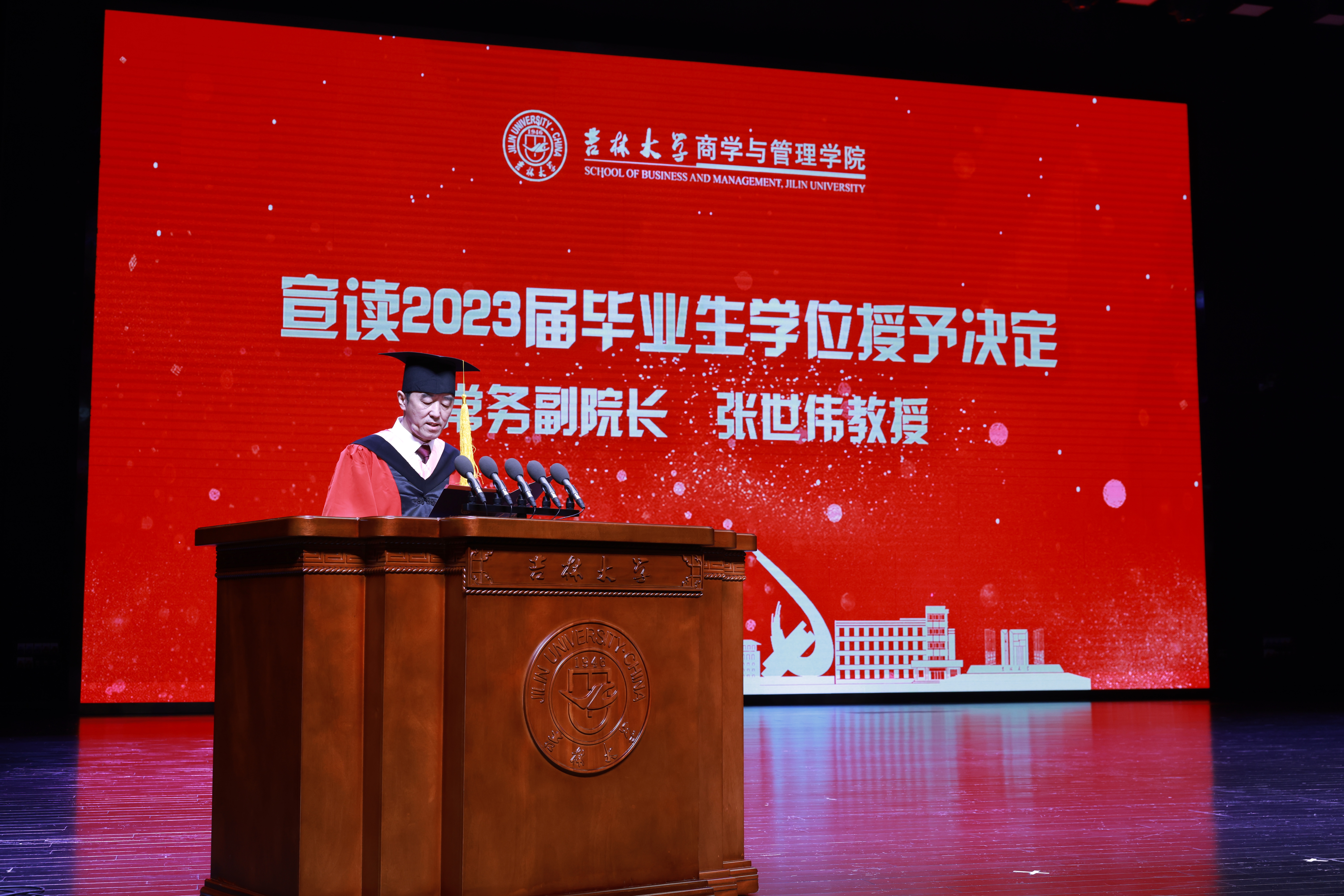 常务副院长张世伟教授宣读了2023届本科生、硕士研究生和博士研究生授予学位决定。
