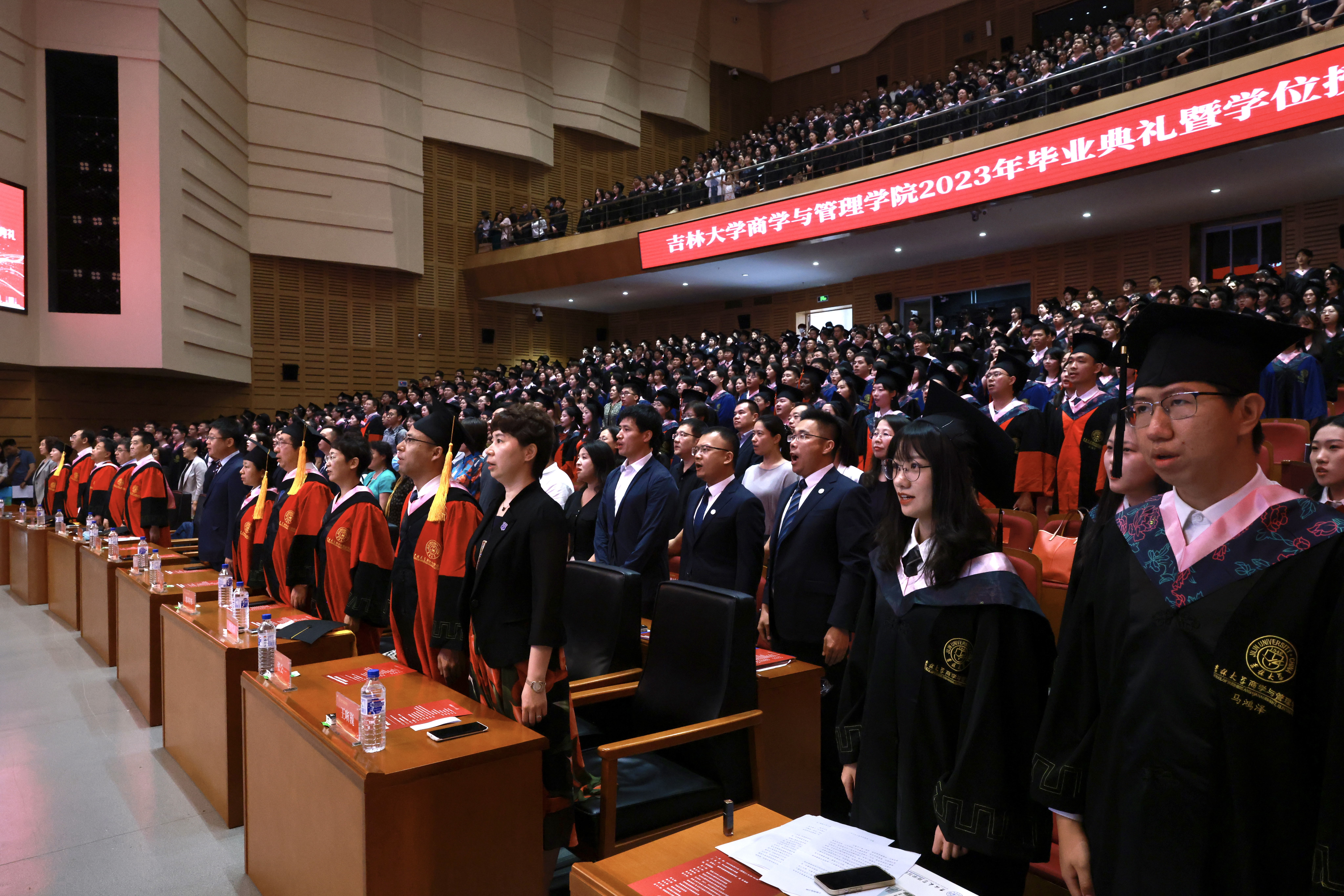 毕业典礼在众人齐声高唱的国歌声中正式拉开序幕。