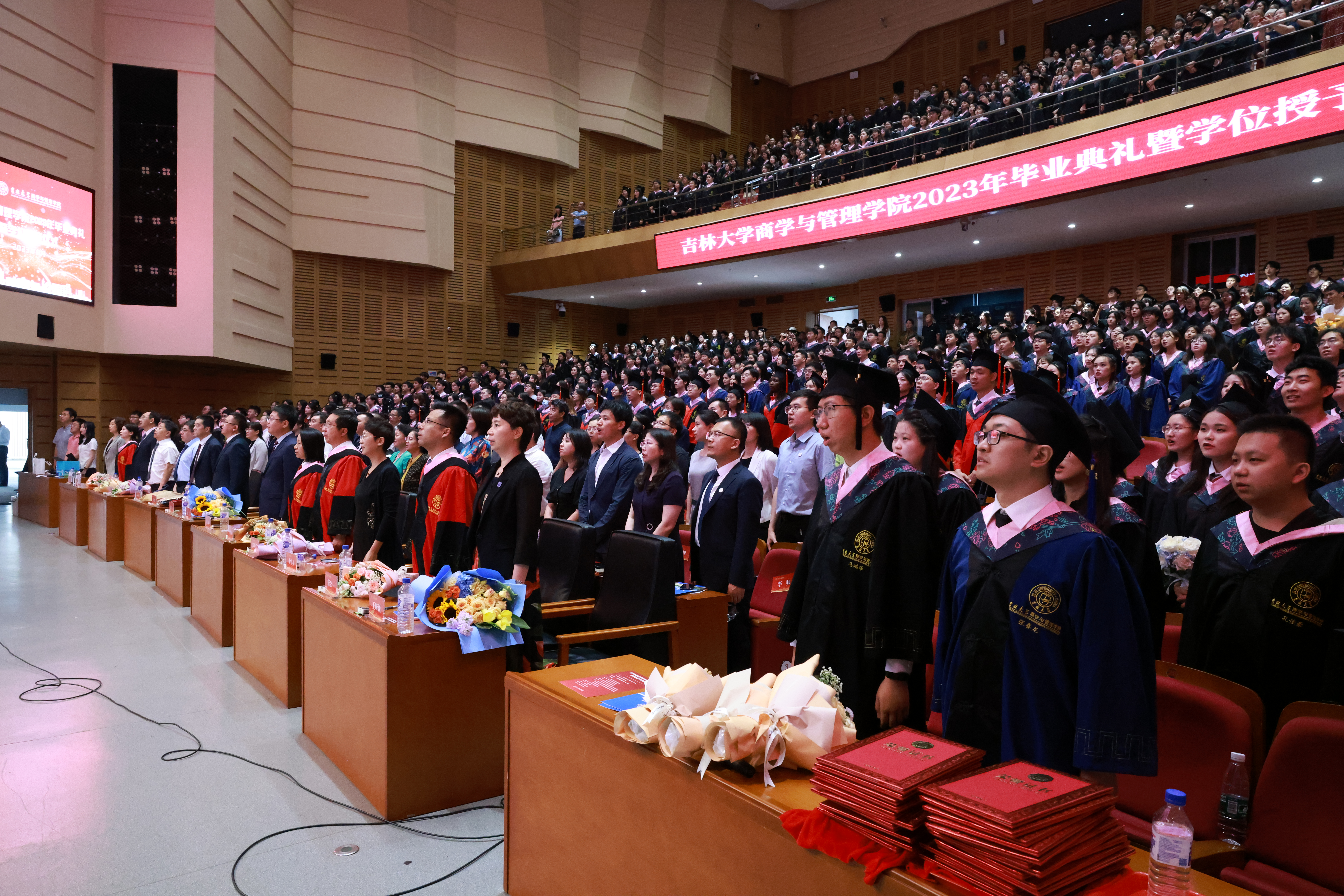领导班子全体成员、数量经济研究中心领导、各系教师代表、校友代表、家长代表、行政教职工、2023届全体本硕博毕业生参加了典礼。参加本次毕业典礼的还有因受疫情影响未能参加学位授予仪式的2020、2021、2022届111名毕业生。典礼由成人抖音