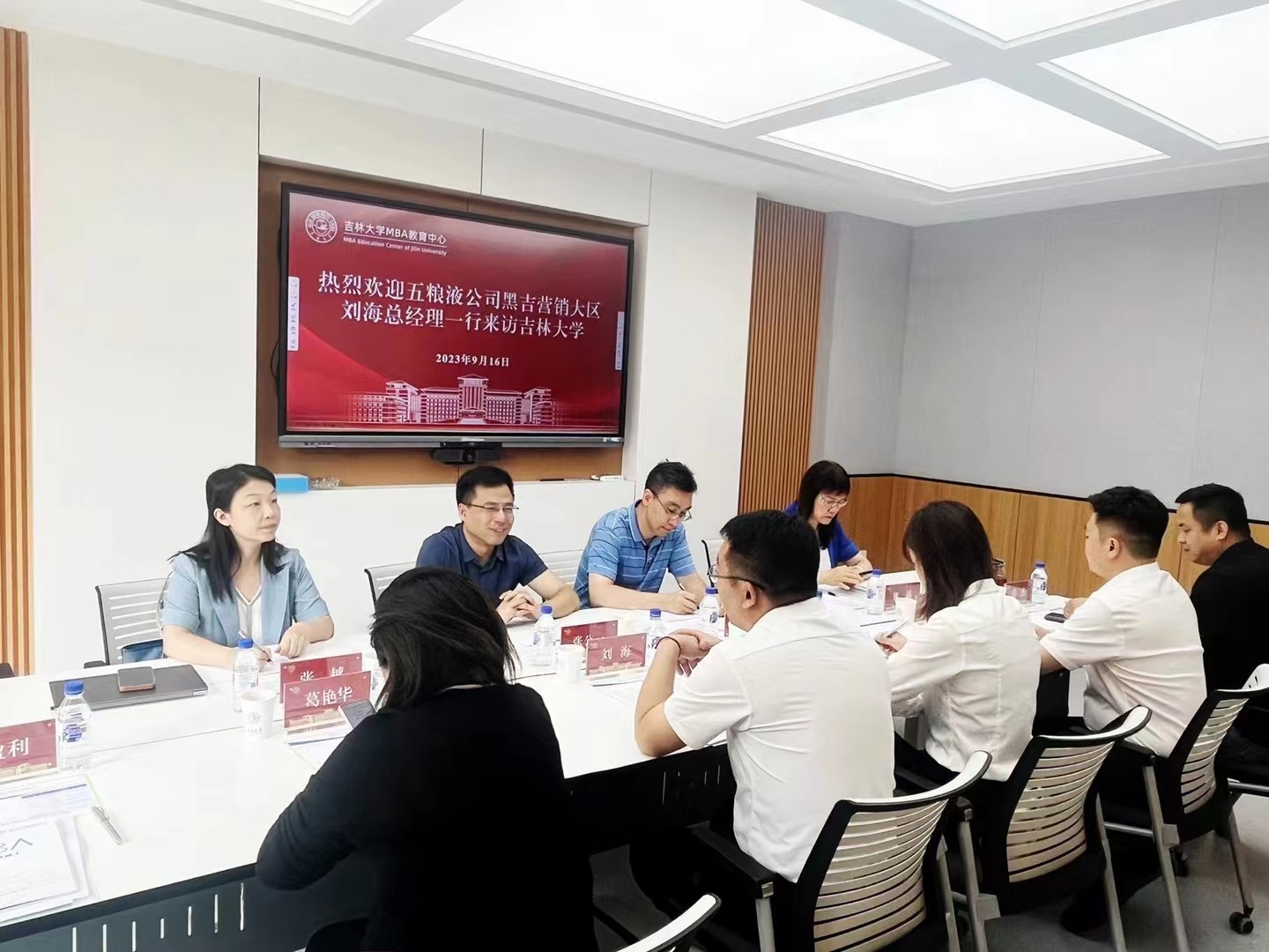 MBA教育中心,就优秀学生支持计划、案例研发、科技创新与成人抖音等议题开展座谈交流。五粮液集团黑吉营销大区总经理刘海、吉林营销总经理王艺璇、人事经理郭盈利、团购经理肖磊、千和酒业董事长葛艳华、总经理裴杰、成人抖音