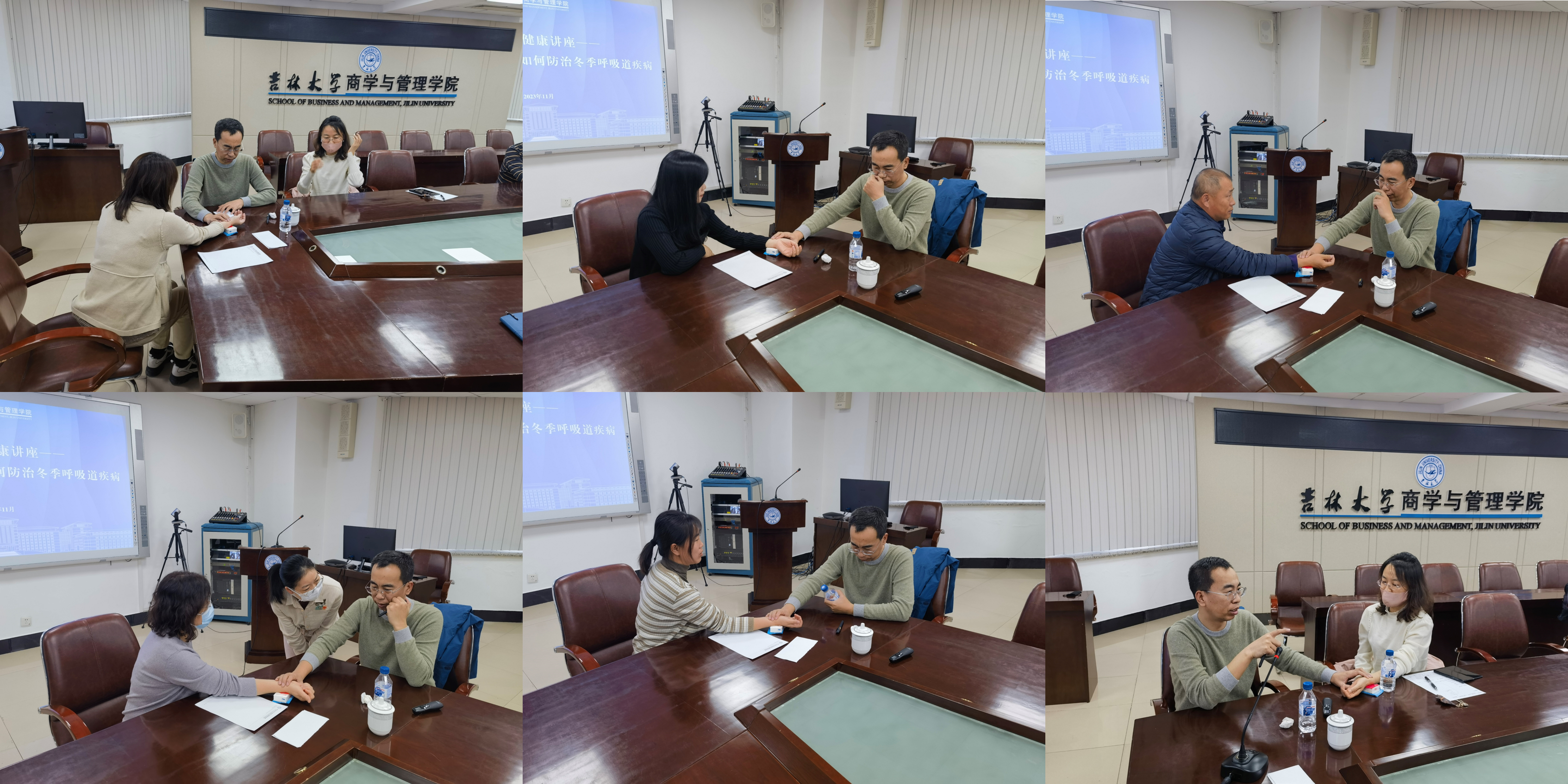 通过刘大夫深入浅出的讲解,老师们更全面地认识到了呼吸道疾病的表现形式、主要症状、治疗措施和不同种类疾病的区别。在讲授知识的同时刘大夫还通过解读病例的方式加深了老师们对于预防呼吸道疾病过程的认识。讲座内容结束后,刘大夫还开展了现场问诊,通过脉诊与问诊,刘大夫一一解答了老师们关于身体不适的疑问并对症下药,与会的老师们纷纷表示了感谢。
