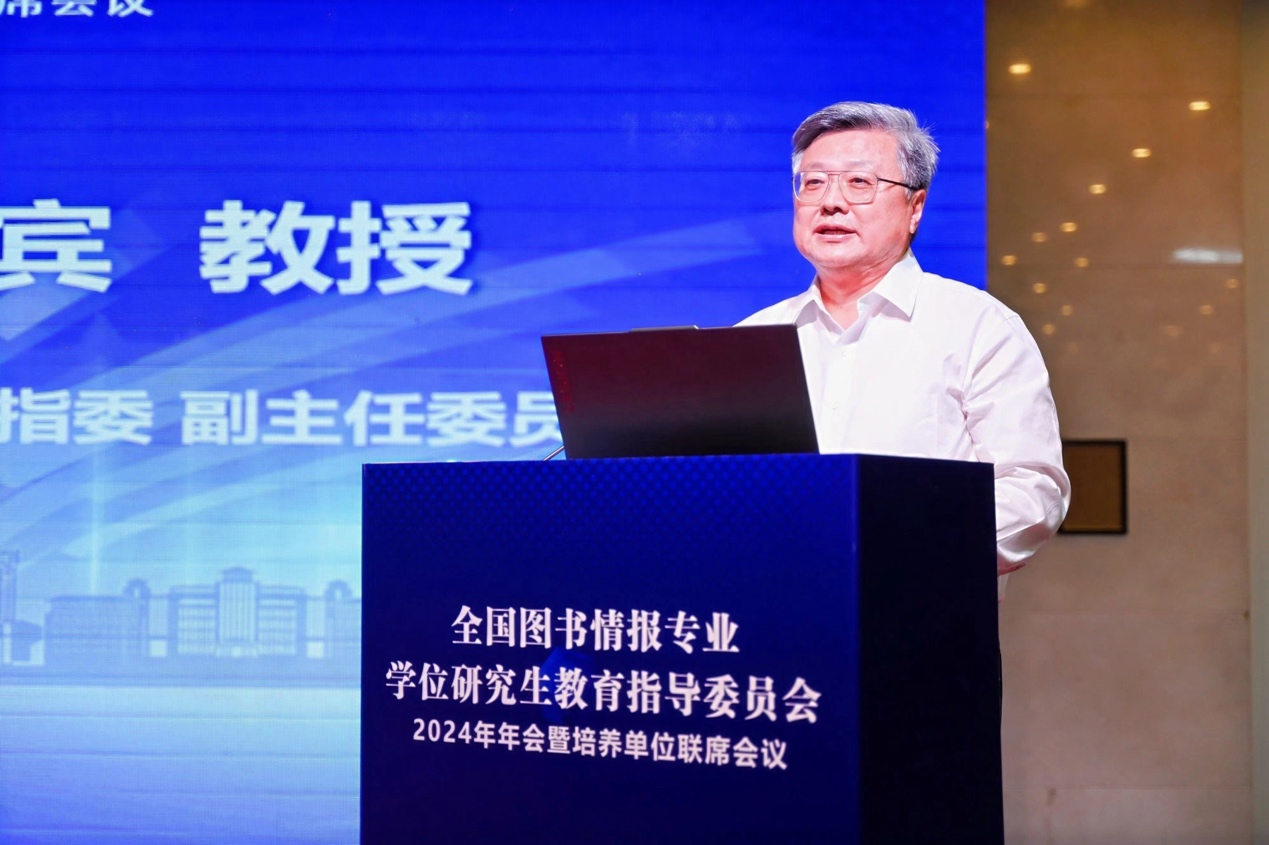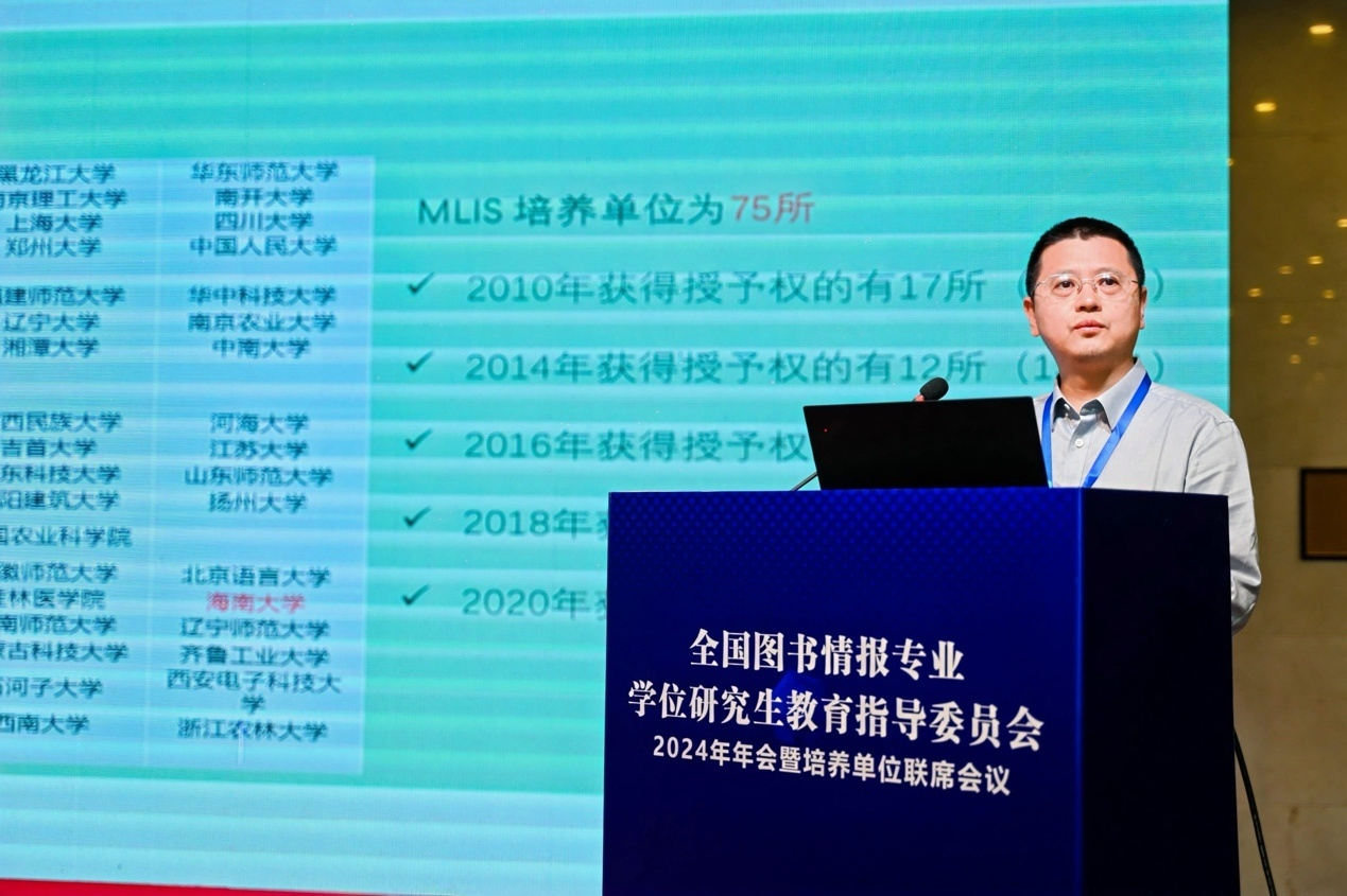 图书情报硕士人才培养体系建设实践”的报告,分享了其在图书情报硕士专业学位研究生教育方面的举措与经验。