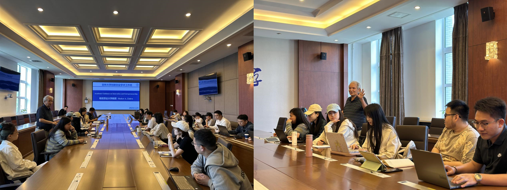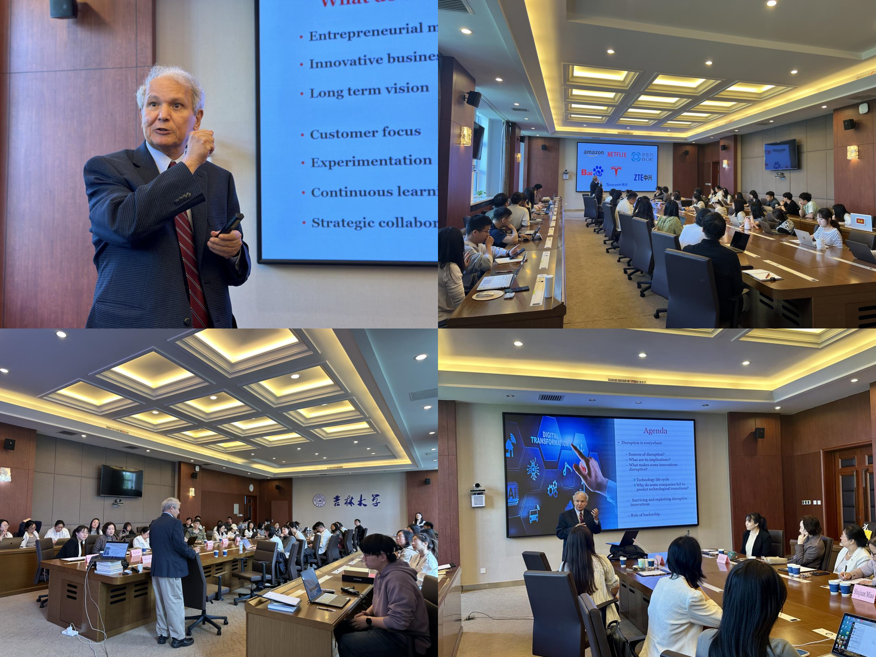 第二场报告围绕《Academic Guidance on Innovation and Entrepreneurship》这一主题展开,同学们针对文献回顾、发现研究问题、寻找理论基础以及机器学习等新兴研究方法对学术研究的影响等问题踊跃发问,Shaker A. Zahra教授结合自身研究经验一一做出悉心指导。他深入浅出的讲解给在场师生留下了深刻的印象,并引发了同学们的积极参与和热烈讨论。