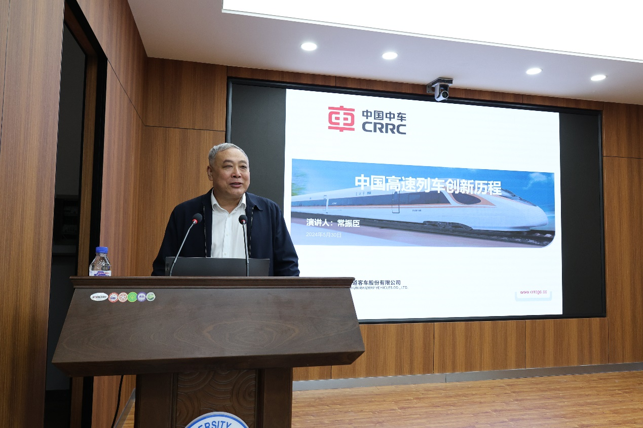 讲座中,常总详细介绍了国内外高速列车发展现状、中国高速历史创新历程、未来技术发展趋势。中国高铁经历了从无到有、从弱到强、从“跟跑”到“并跑”再到“领跑”的过程,坚持自主创新、开放创新和协同创新,持续完善技术创新体系,不断提升技术创新能力,实现了从“技术引进”到“中国制造”再到“中国创造”的跨越式赶超,形成了完整的高速铁路勘察、设计、建设、装备、运营、安全管理标准体系以及高铁装备品牌和自主知识产权,已成为“中国制造”和“中国速度”的标杆。