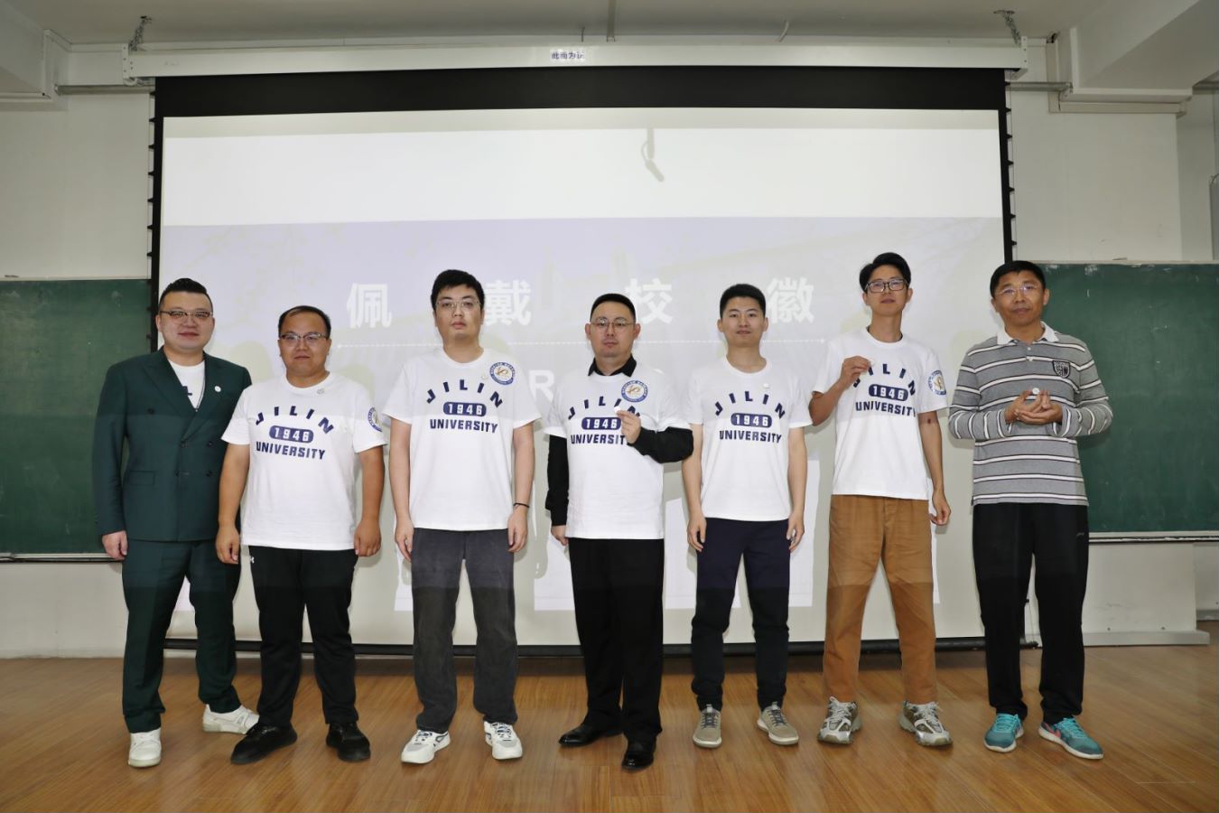 活动第四项,赵军书记为校友代表佩戴校徽。胸前的校徽是成人抖音