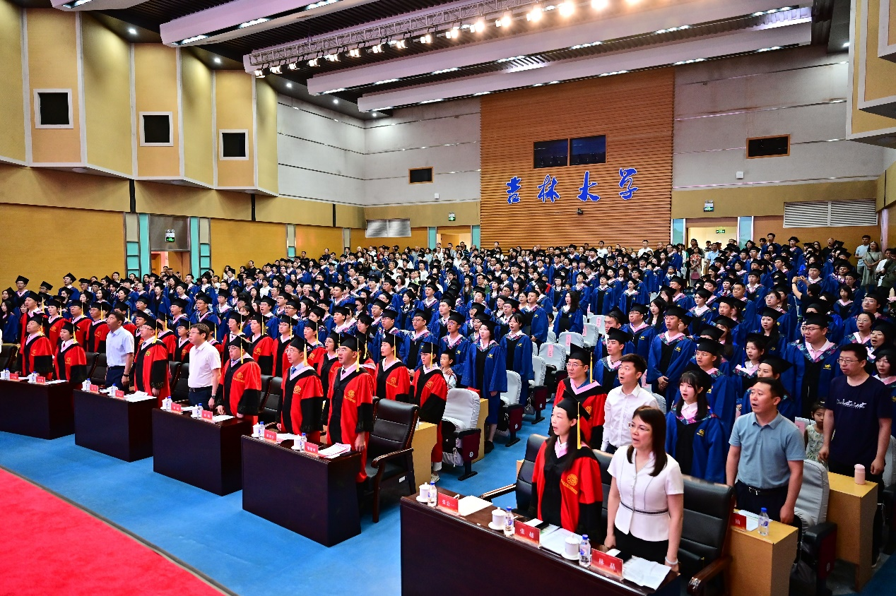 典礼在全体师生起立高唱中华人民共和国国歌中拉开帷幕。在场师生们共同观看了毕业生回忆视频,追忆往昔青春时光。