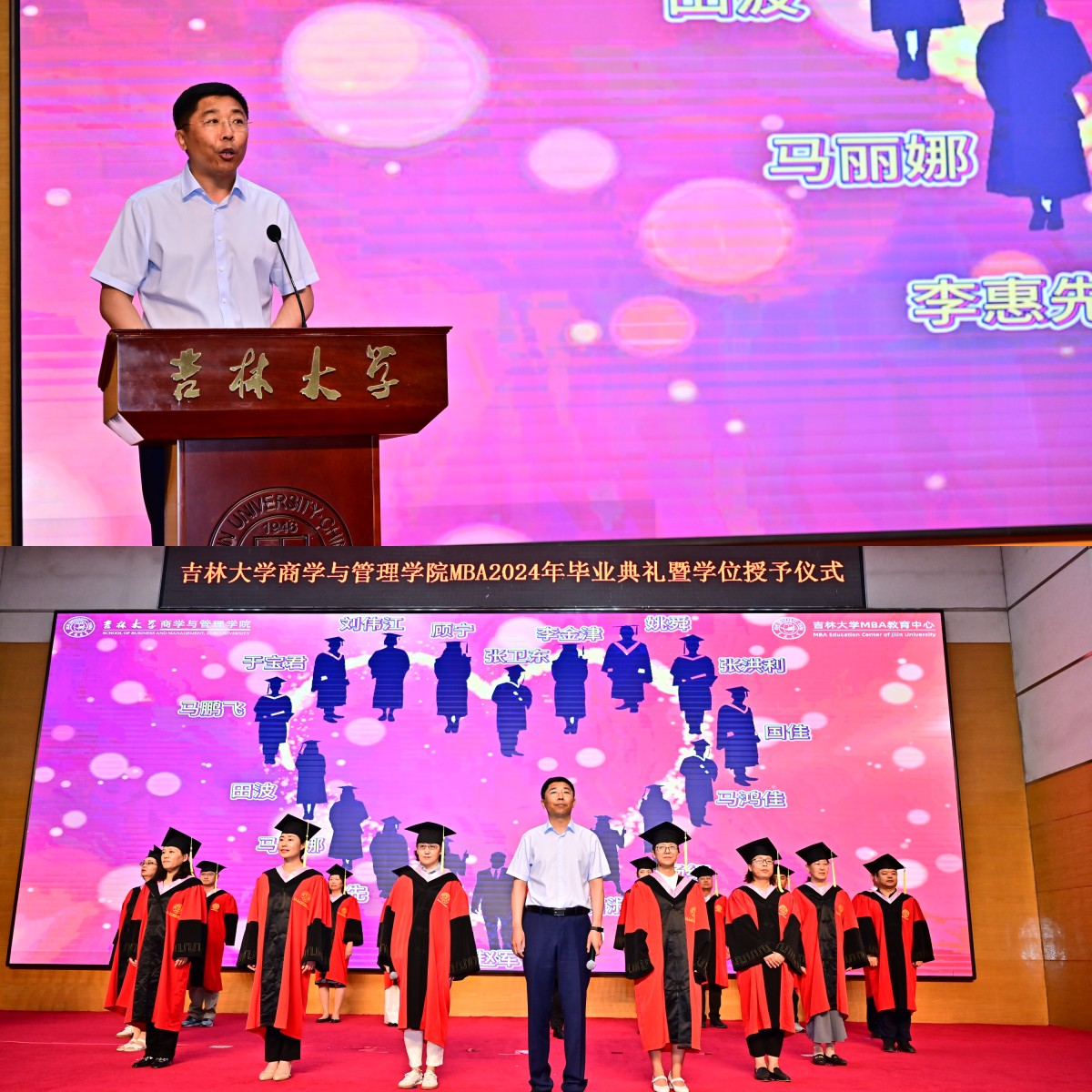 领导班子全体成员与2024届全体MBA、MEM毕业生同堂共庆,共襄盛举。典礼由MBA教育中心主任兼成人抖音