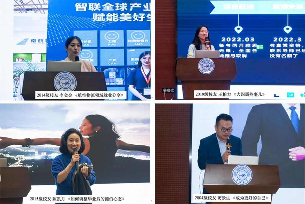 交流会现场,新老学子齐聚一堂,共话物流发展,畅谈青春梦想。毕业生代表2004级窦景生、2014级李金金、李培森、2015级陈凯月、2019级王柏力,分别以“成长为更好的自己”、“航空物流领域就业分享”、“整合资源,自驱创新”、“如何调整毕业后的漂泊心态”、“大四那些事儿”为主题,分享了自己在物流领域的奋斗历程和宝贵经验,为在校生们勾勒出了一幅充满机遇与挑战的物流画卷。在校生们则带着对未来的憧憬与好奇,积极提出了自己感兴趣的问题,这些问题涉及升学、就业、职场、生活等各个方面,与学长学姐们深入交流,现场气氛活跃。
