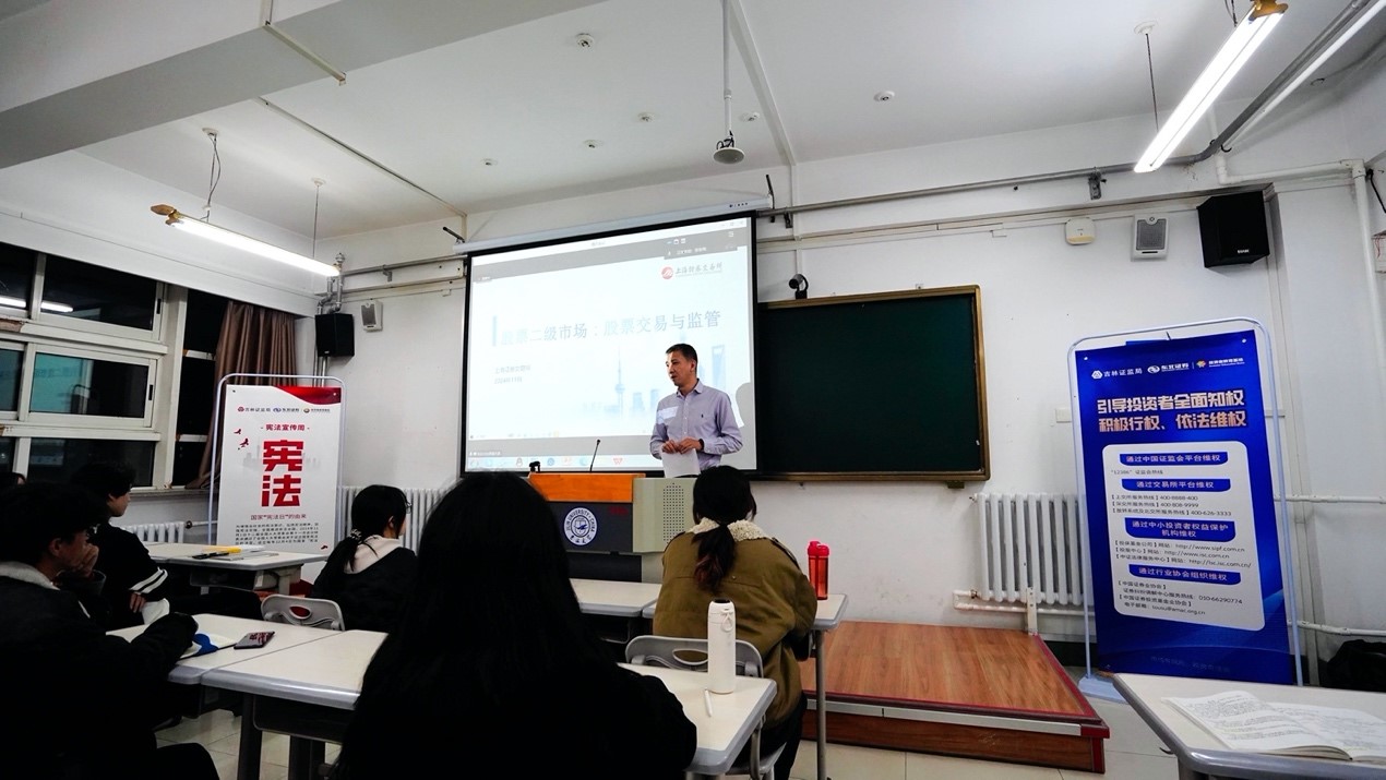 作为上海证券交易所投资者服务部高级经理,张赳夫老师从股票交易机制、二级市场交易监管及投资规律与方法三个层面为学生讲述金融风险管理方面的有关知识,引领学生将理论学习与实际将结合,帮助学生更好地了解实务知识。