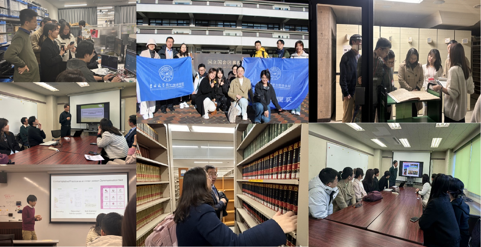 师生还前往日本国立国会图书馆参观学习,了解了图书馆的设计理念和特色馆藏,并阅览了早期日本报纸,深入了解了历史报纸的保存技术。通过实地参观,同学们对日本的图书馆管理系统、馆藏资源以及文化保存技术有了更深的认识。