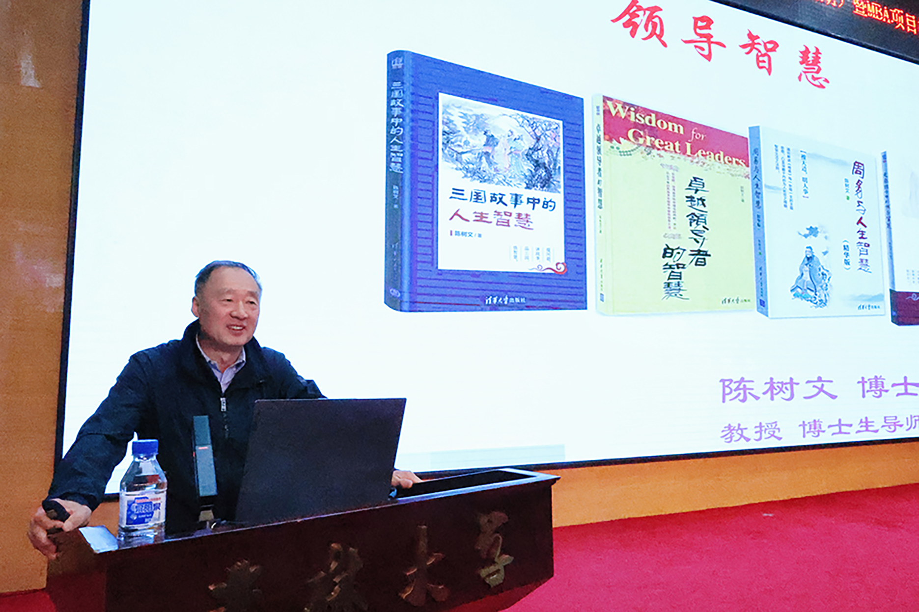 院长陈树文教授做专题讲座,分享其著作《三国故事中的人生智慧》。讲座由成人抖音
