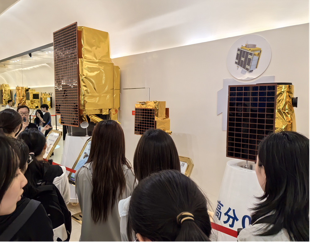 第二站,师生们来到国家级航天科普教育基地——长光卫星技术股份有限公司。工作人员介绍了公司的发展历史,并带领我们参观了“吉林一号”组星发射状态等比模型、吉林一号“一箭41星”以及随着技术进步逐渐演进的吉林一号高分卫星等。