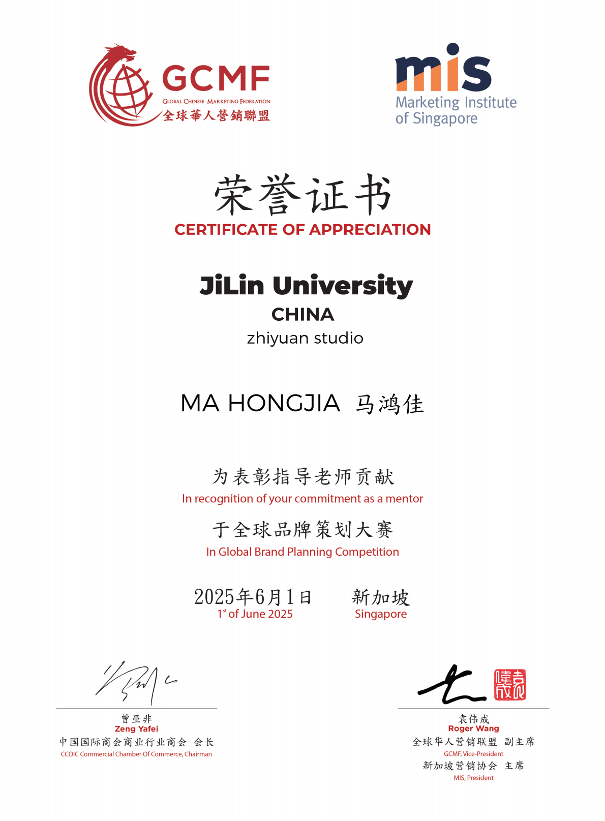 2025年6月1日,2025年(新加坡)商业精英挑战赛-全球品牌策划大赛,由全球华人营销联盟(GCMF)与中国贸促会商业行业委员会联合主办,在新加坡管理大学圆满落幕。此次大赛吸引了来自全国30个省、自治区、直辖市的600余所高等院校参与,其中“985”“211”“双一流”院校近100所,报名参赛队伍总数超过1万支。全球赛阶段,汇集了来自中国大陆、中国台湾、日本、新加坡、菲律宾、泰国、孟加拉国、印度尼西亚、马来西亚、俄罗斯、巴西、阿富汗等国家和地区的18所高校的21支参赛队伍,共计150余名师生在狮城展开了激烈角逐。