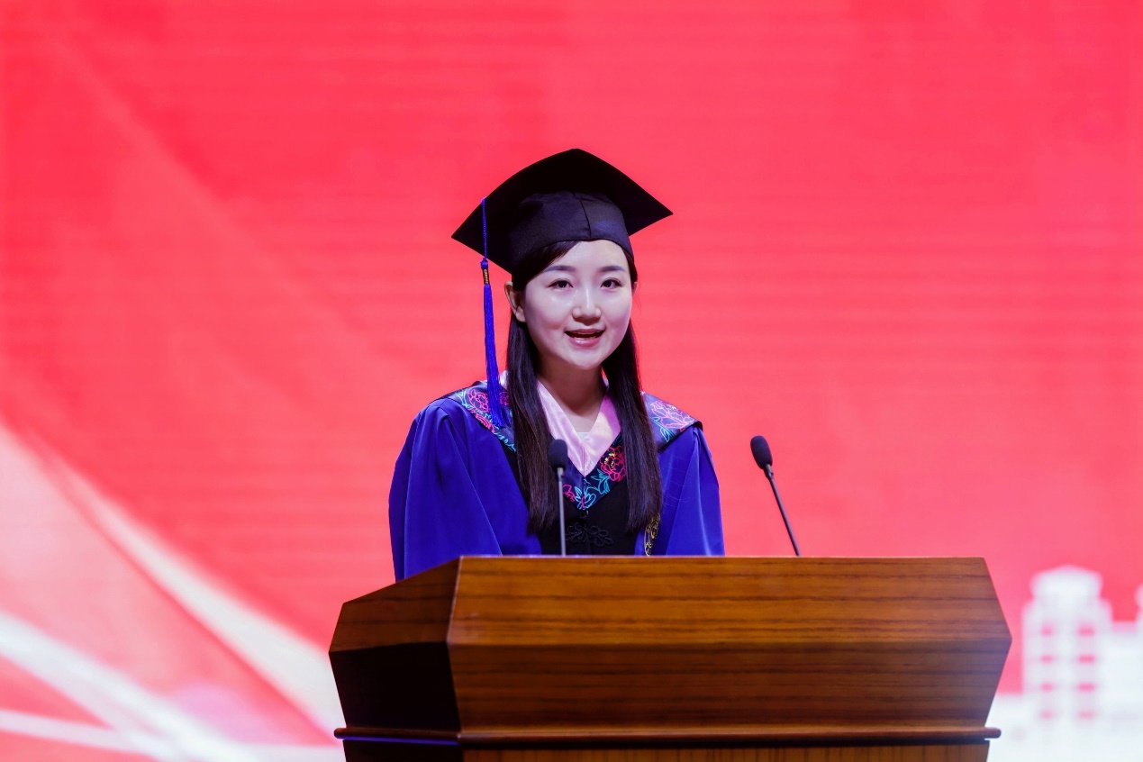 毕业生代表王新然在发言中分享了她的所学所感并动情说道:“成人抖音