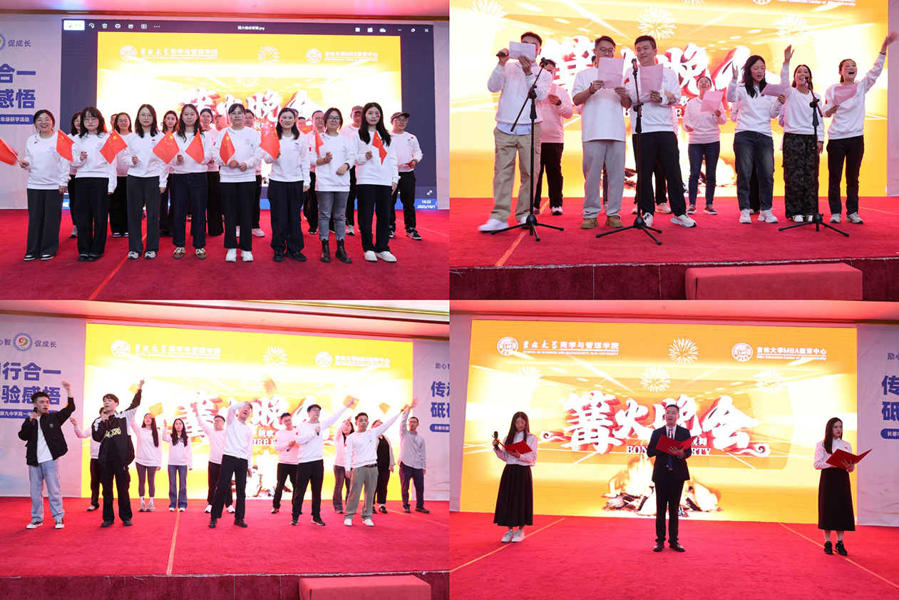 MBA”的字样在夜幕下熠熠生辉。烟花于此刻盛放,如写满祝愿的诗行绽放在天幕,与地上篝火相映成画,照亮璀璨的夜晚,也照亮每一位学子即将启程的路。