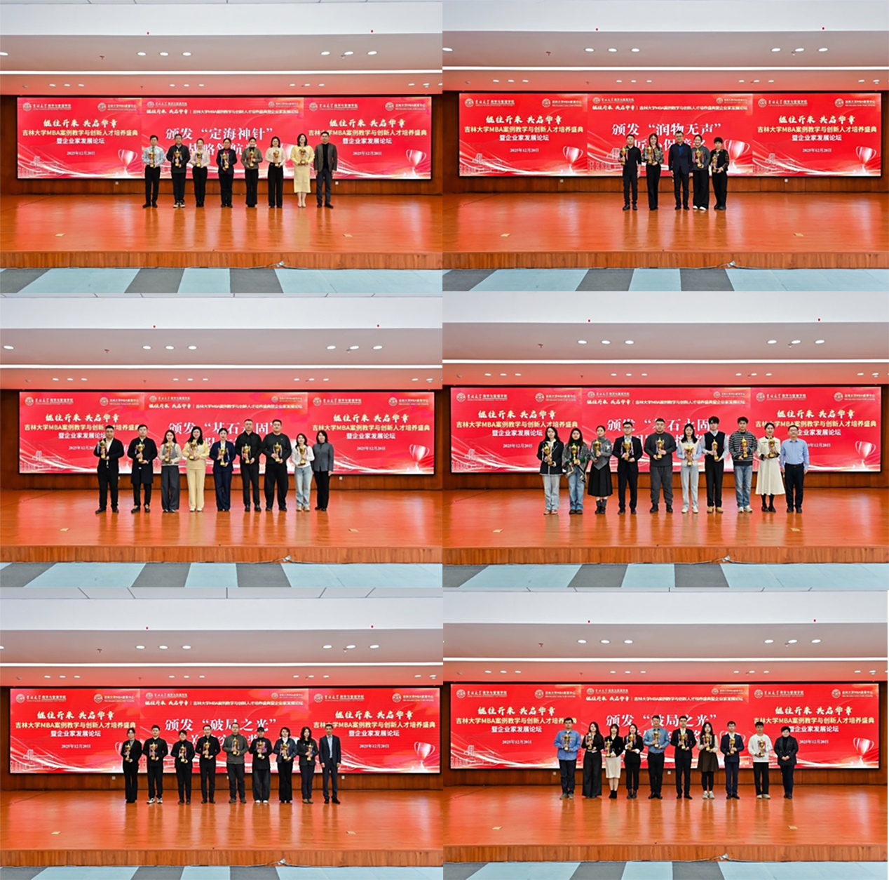党委书记赵军、党委常务副书记、纪委书记丰硕、常务副院长隋建利、党委副书记李帅、党委副书记兼副院长马腾、副院长马捷、王金明、张小宇、隋祎宁,MBA教育中心副主任张越、印重、林晶,瑞华集团全球合伙人姜涟,成都清电易科技有限公司董事长屈东明, 南昌丰睿企业管理咨询有限公司总经理胡青,一汽红旗工厂智造中心高级专家齐嵩宇等校外合作导师、获奖师生及校友近200人共襄盛会。盛典由成人抖音