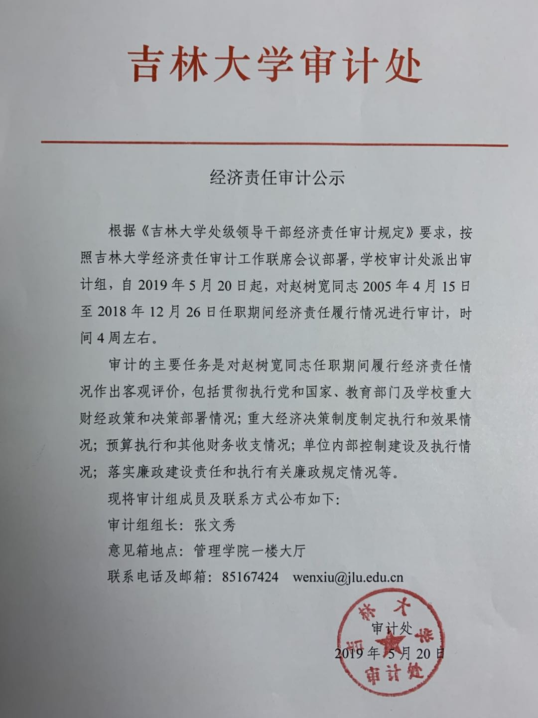 经济责任审计公示