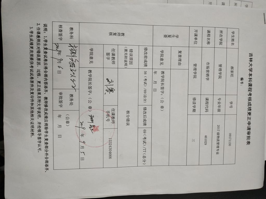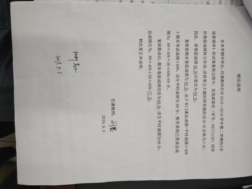 2017级郝家旺同学(学号:09171130)2018-2019-2学期课程成绩更正如下: