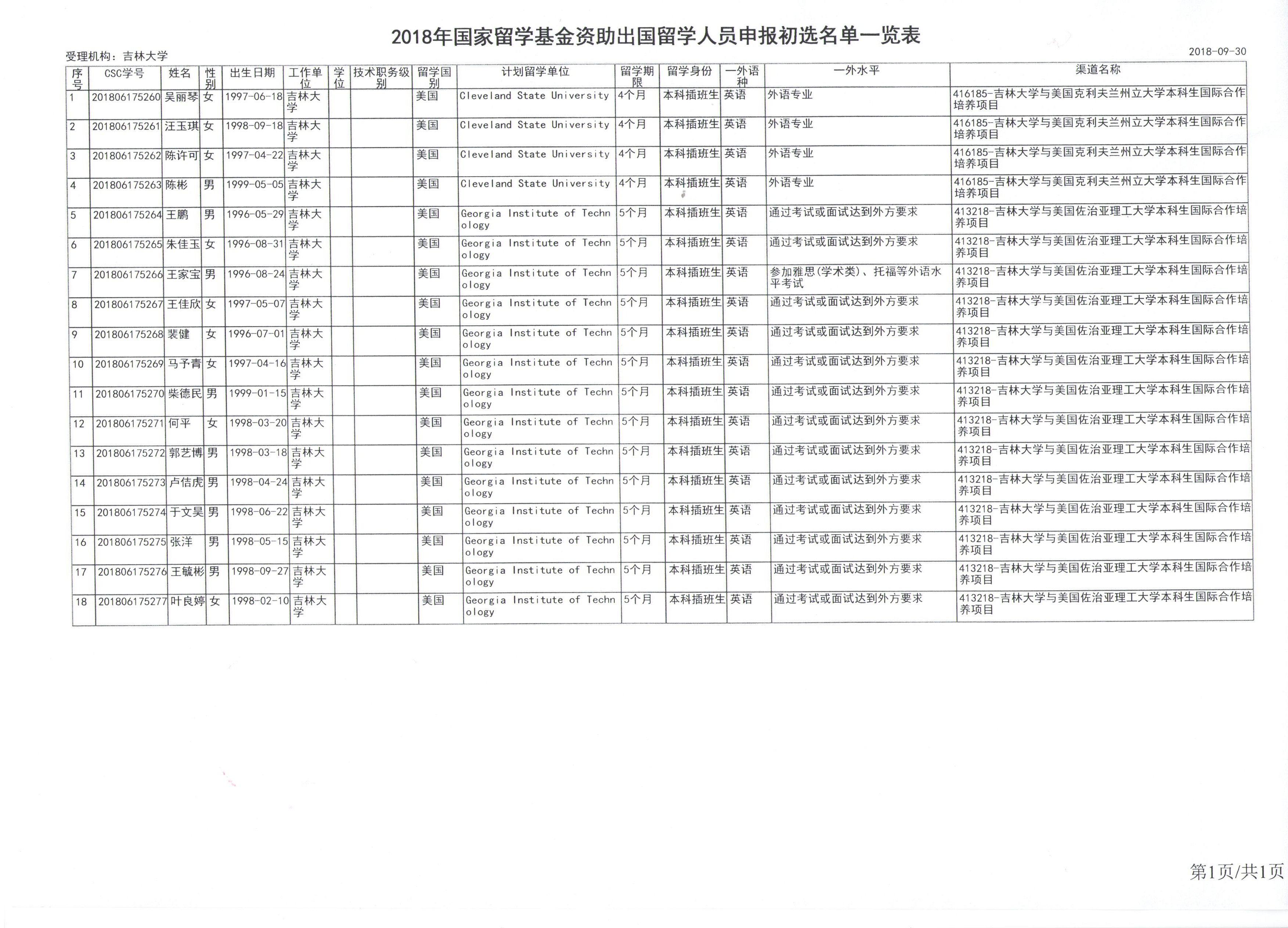 年国家留学基金资助出国留学人员申报初选名单一览表(成人抖音 )