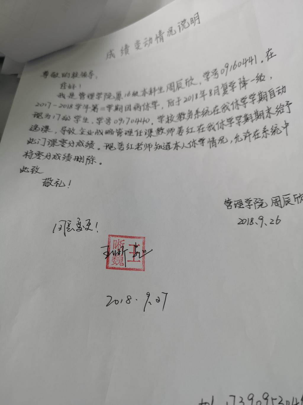 关于管理成人抖音 2017级周辰欣同学企业战略管理课程成绩更正的公示