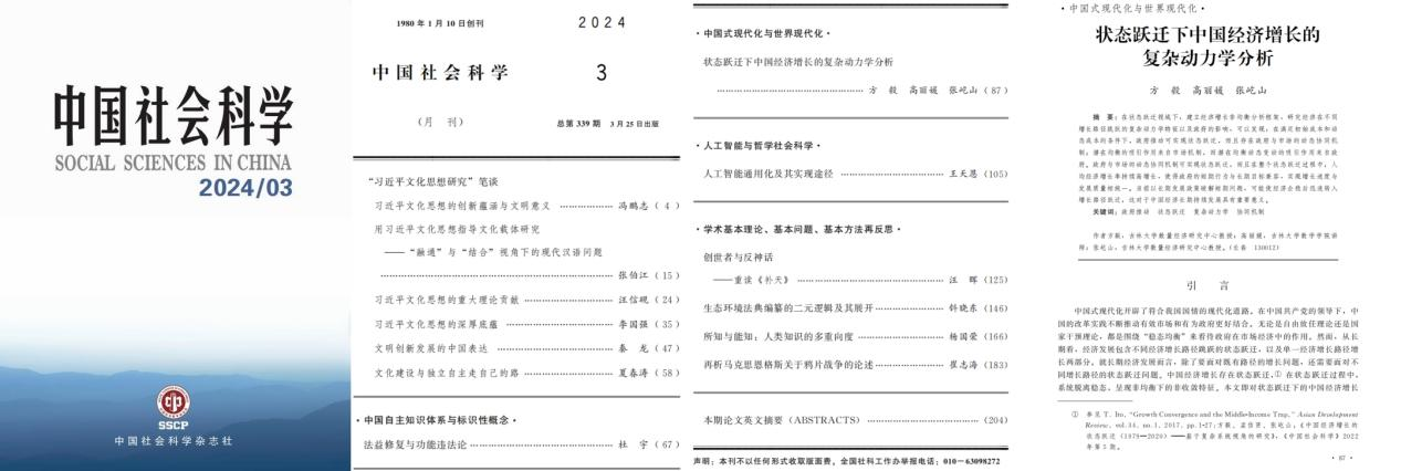 高丽媛老师等在《中国社会科学》2024年第3期发表题为《状态跃迁下中国经济增长的复杂动力学分析》的文章。该文基于新时代中国经济增长状态跃迁的重要特征,分析中国经济增长路径跳跃过程中的复杂动力学机制,探讨其中政府作用。