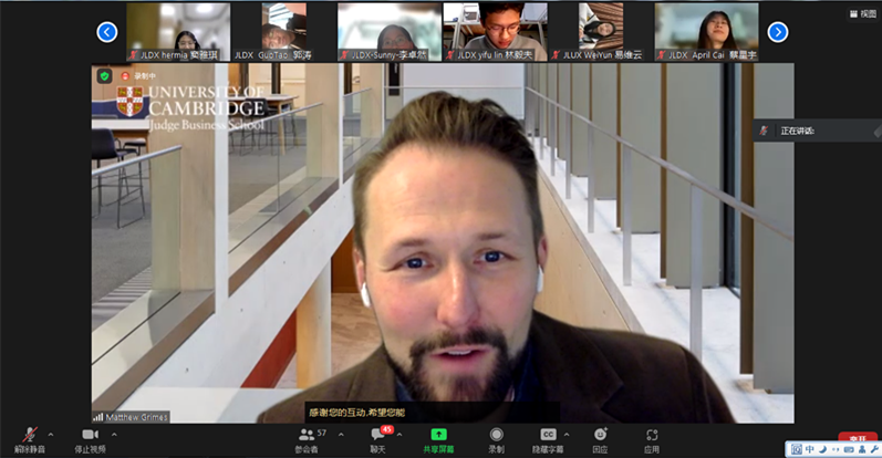 副院长胡封晔、英国剑桥大学创业中心主任Matthew Grimes出席开班仪式并致辞。来自成人抖音