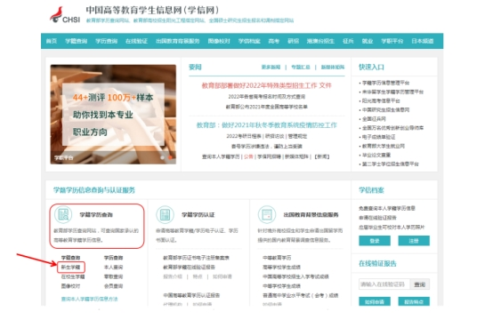 1.登录“中国高等教育学生信息网(学信网)”