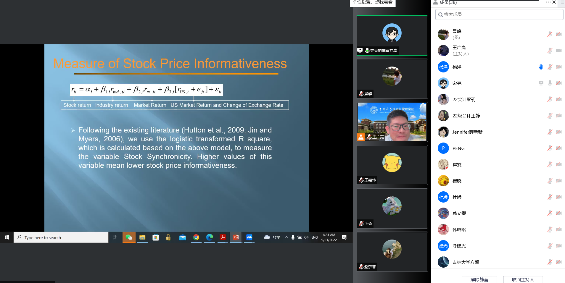 分享结束后,宋亮博士和参会师生展开了热烈的讨论。从论文的数据整理,到具体变量的内涵意义;从学科的发展特点,到投稿的文化差异;从学者的成长经历,到未来的合作前景,讨论在轻松、愉快、积极、丰富、高效、进步的氛围中结束。