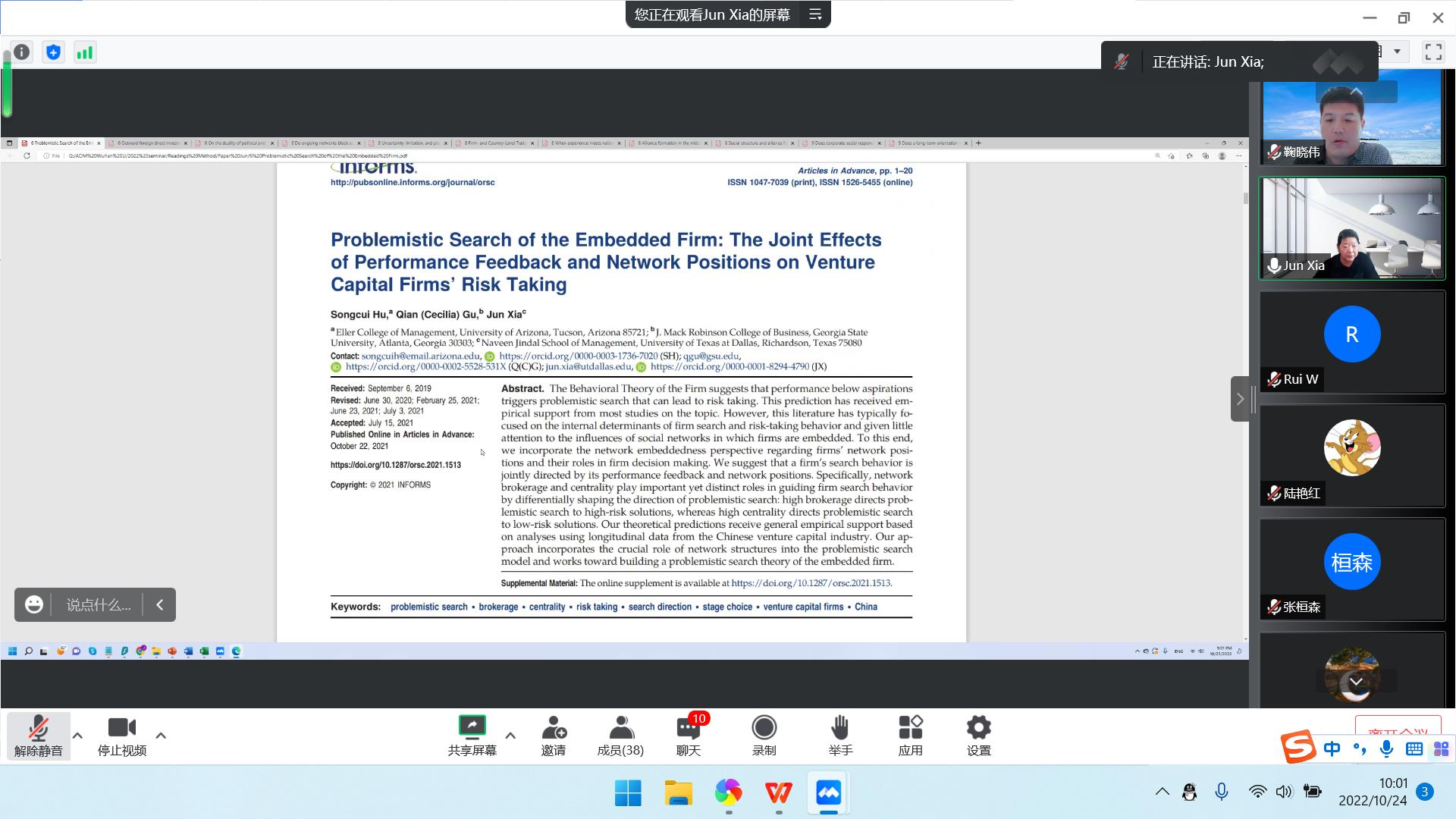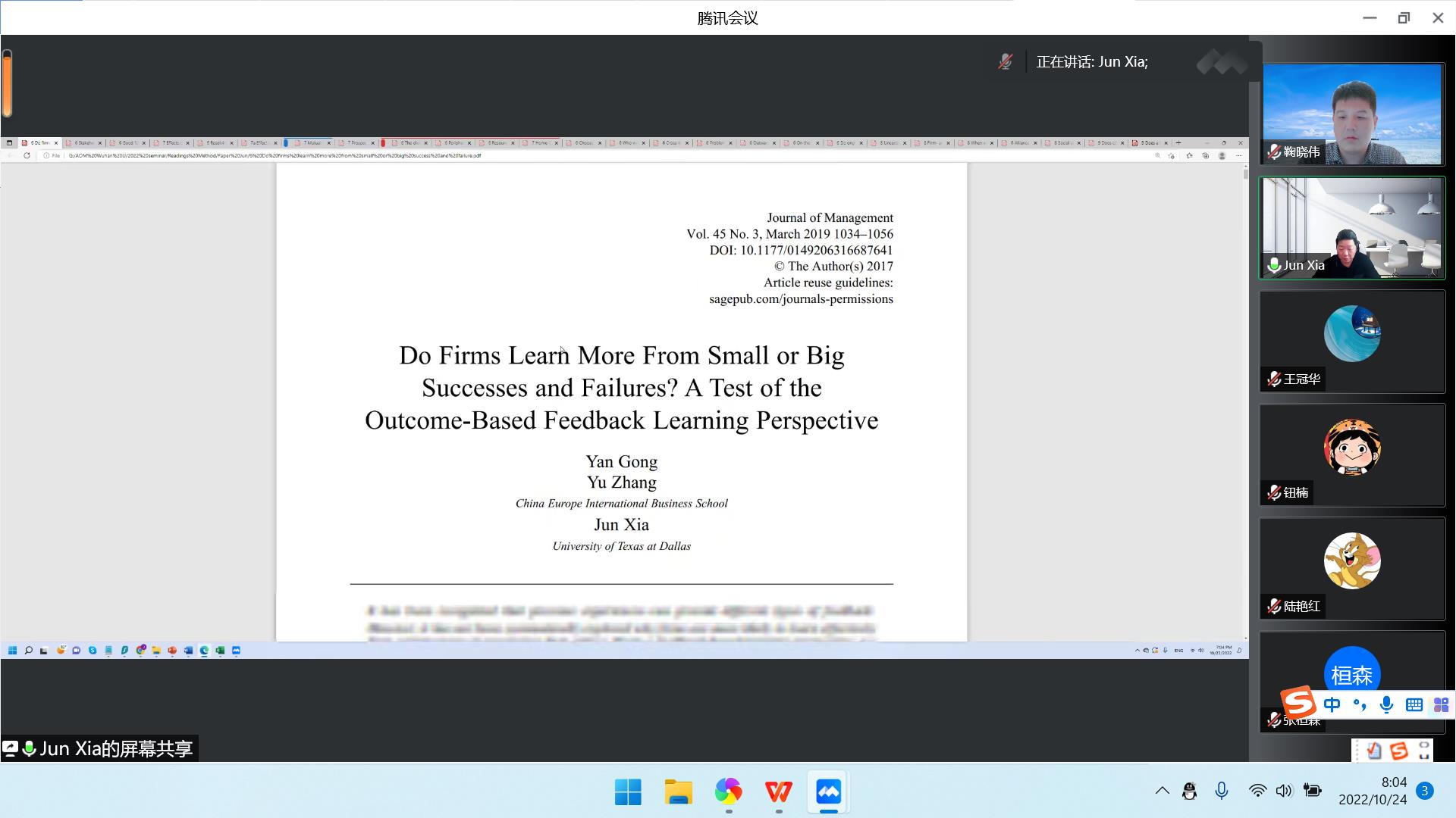 第一场讲座题为“Survival analyses”。讲座开始,夏军教授简单回顾了之前讲座中关于“Level of Analysis”和“Unit of Analysis”的区别和概念,为后面的内容作预热。夏军教授强调这类数据既要有“起点”,又要有“终点”,并通过对论文中对“Survival analyses”的具体应用来对这个方法进行讲解。比如介绍了“Misconduct”、“IPO”、“Bankruptcy”、“IJV Survival”、“SA Survival”及“Divestiture”作为样本的例子,讲座中穿插了Hazards Model、Probit和Logit模型以及Fixed effects的介绍。讲座过程中,夏军教授与成人抖音