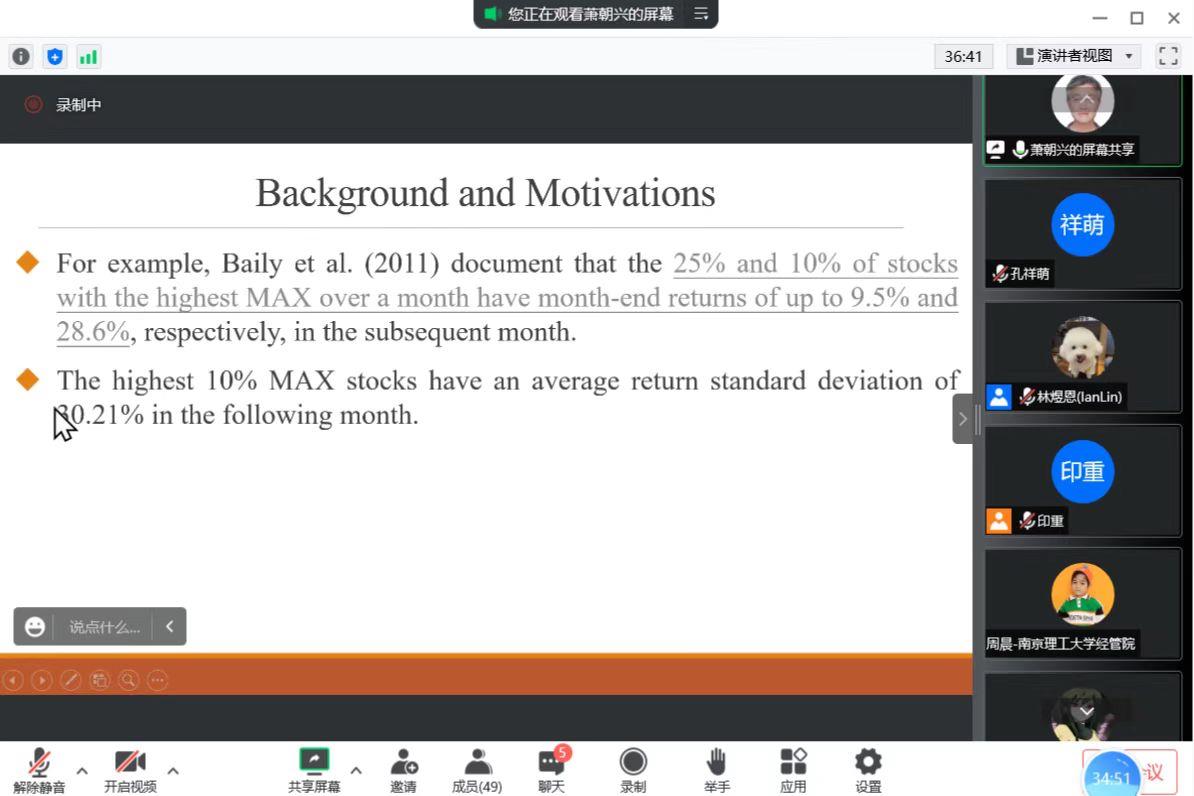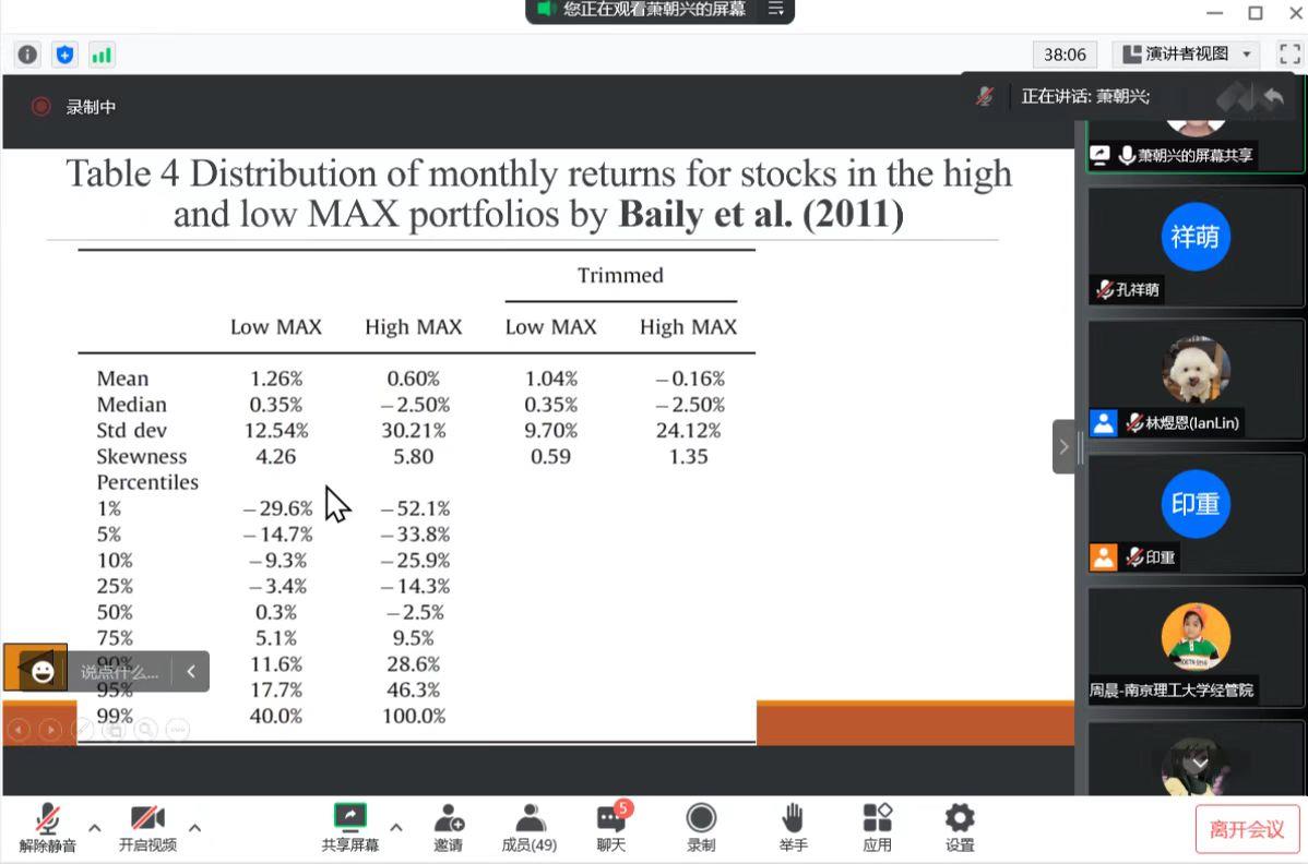 萧朝兴教授对近期的研究成果“Is Investing in Lottery-Like Stocks Really Unprofitable?”进行分享。讲座由林煜恩副教授主持。受疫情影响,本次讲座在线上进行,成人抖音