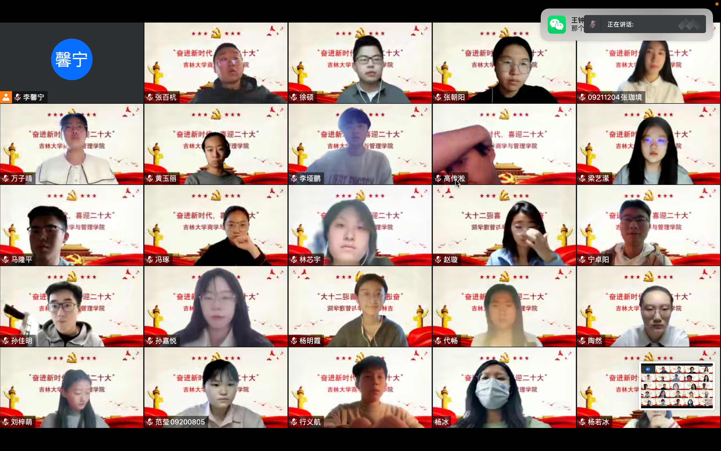 的积极组织下,党支部书记与同学们一起早早在屏幕前等待着大会的开幕。大会开始后,对于习近平总书记的精彩报告,同学们认真专注地观看,并对大会的重要内容进行了记录。习近平总书记在报告中说到大会的主题是:高举中国特色社会主义伟大旗帜,全面贯彻新时代中国特色社会主义思想,弘扬伟大建党精神,自信自强,守正创新,踔厉奋发,勇毅前行,为全面建设社会主义现代化国家、全面推进中华民族伟大复兴而团结奋斗。会后,同学们纷纷表示,如今我们已实现了第一个百年奋斗目标,向第二个百年奋斗目标进军,此时的我们更要积极进取,努力担当强国使命,同时要时刻谨记习近平总书记的报告内容,以指引我们正确的发展前行。