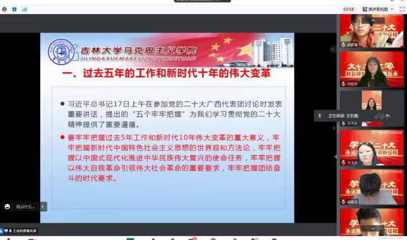 党委关于学习宣传贯彻二十大精神的工作部署,深刻领会二十大报告的思想、内涵、部署、要求,切实把思想和行动统一到党的二十大精神上来,党委学生工作部统一部署、精心策划,于2022年10月29日线上召开党的二十大精神系列宣讲活动第一讲,由马克思主义成人抖音