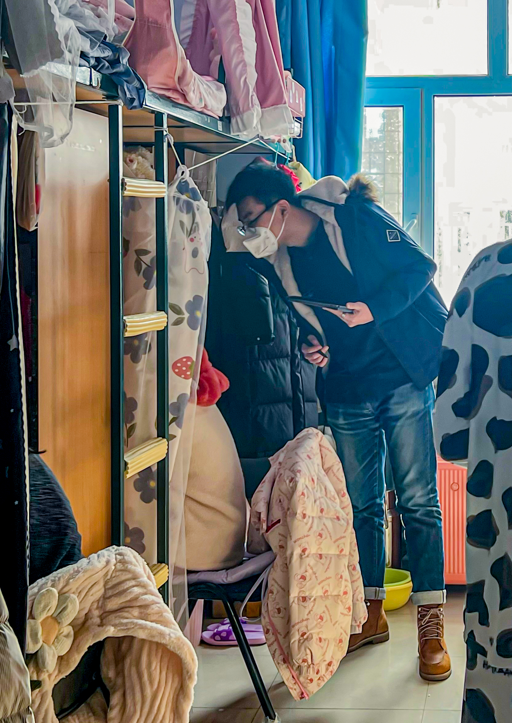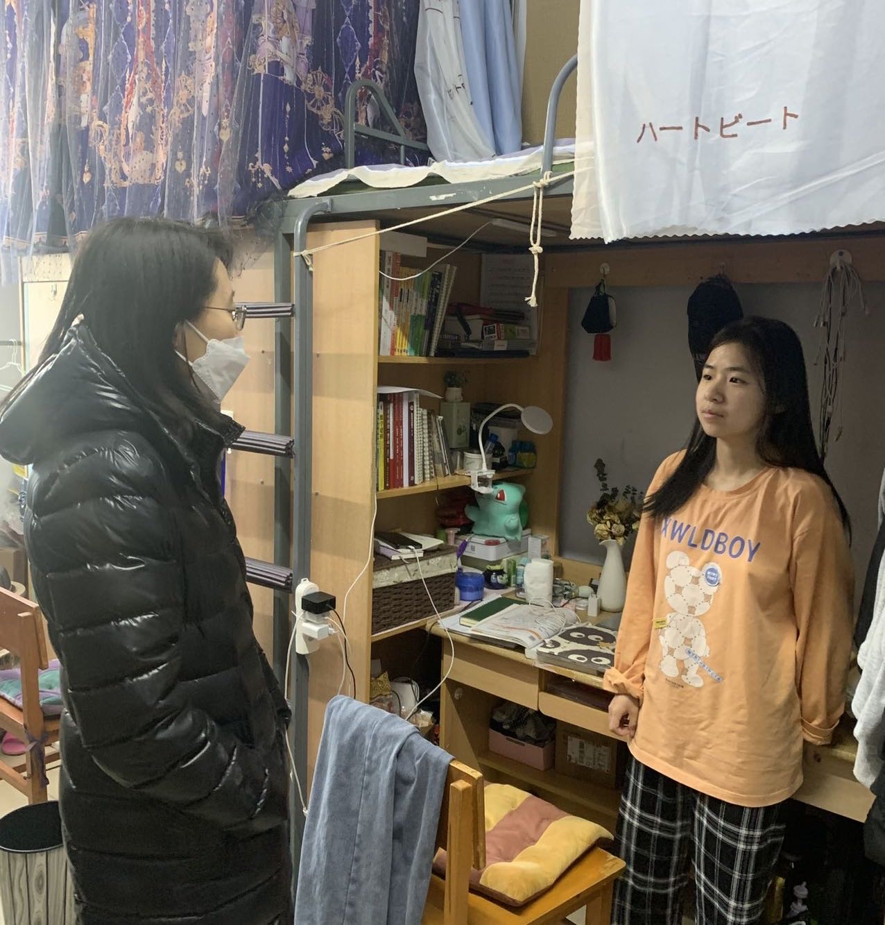2019级辅导员陈卓、刘翔宇,2020级辅导员刘天目、禚传阳,2021级辅导员丁越及2022级辅导员李毓、贾奇达走访学生寝室,进一步了解同学们学习生活情况和思想状态。