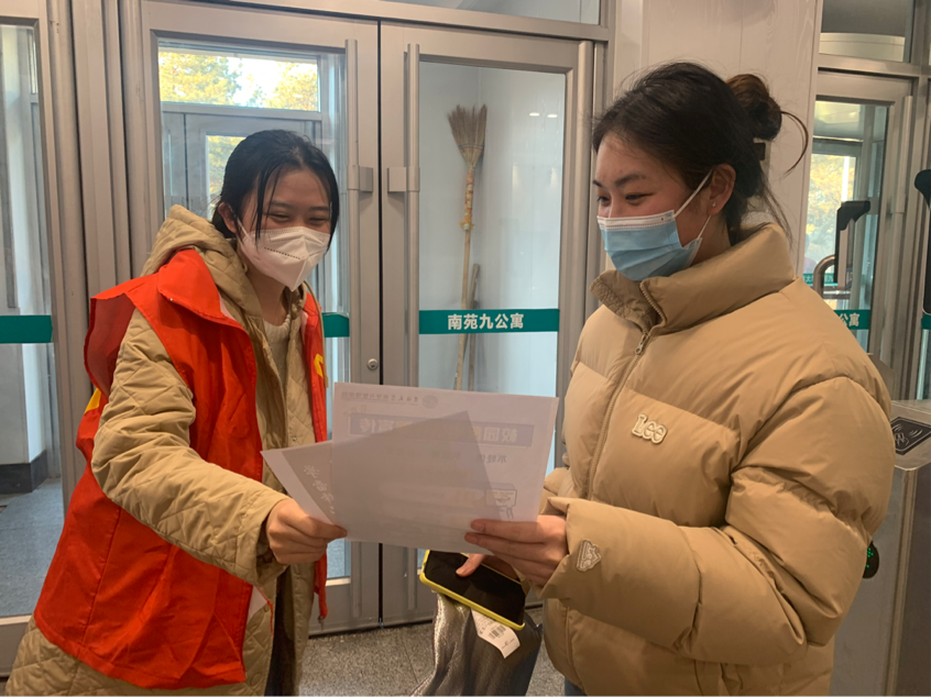 组织4名志愿者在南苑九公寓楼下发放“学雷锋”和“防电信诈骗”的传单。志愿者们在活动中学习榜样事迹,用自己的实际行动践行着雷锋精神,在志愿服务中锻炼成长,传递文明。