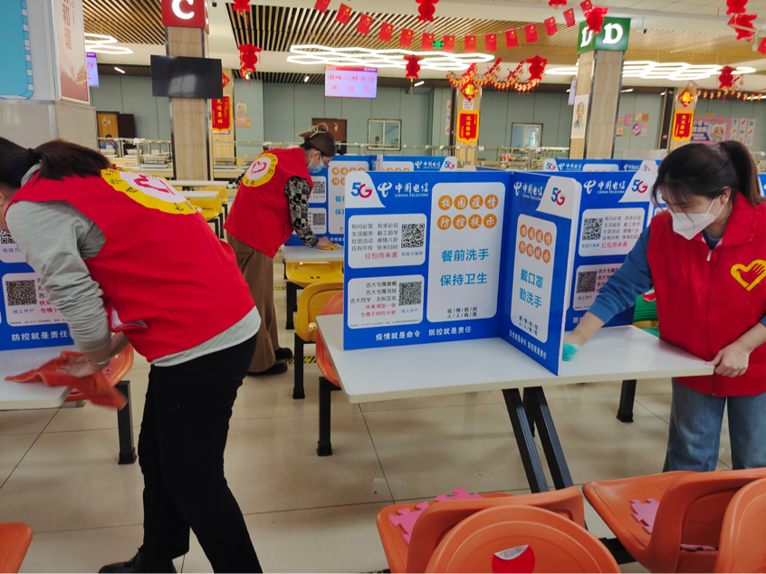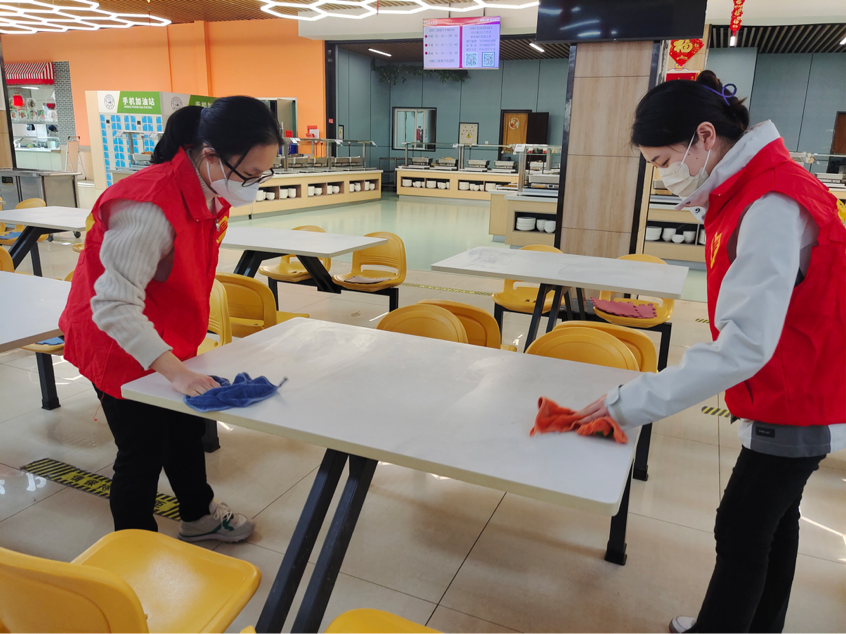 组织15名志愿者在湖畔二楼智慧餐厅协助工作人员进行擦拭桌椅、收拾桌面、收拾餐盘、维护秩序等一系列工作,营造了“学习雷锋、助人为乐、提升自我”的志愿服务氛围。志愿者们将雷锋精神付诸实践,切实感受雷锋精神的力量与价值。