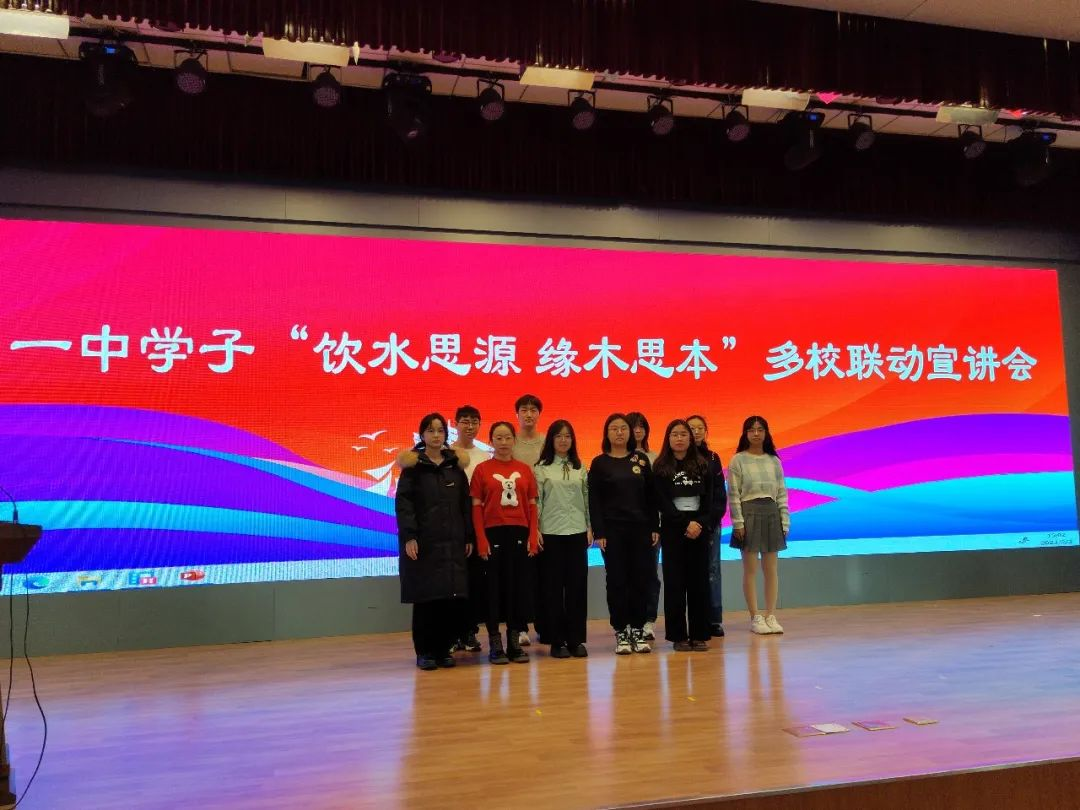 的曲珈萱为代表的11位志愿者团队在舒兰一中报告厅面向舒兰一中高三文理科实验班全体同学、舒兰一中高三领导进行招生宣讲。会前,队员们积极参与商管成人抖音