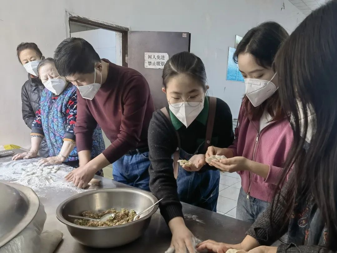 年前团队也去慰问了社区辖区内敬老院的老人们,为他们送去了团队购置的米、面、牛奶、香肠等生活物资,N95口罩、酒精湿巾、医用酒精等防疫物资,帮助老人打扫卫生,整理房间,张贴窗花和福字,和老人一起包饺子,陪老人聊天,询问老人生活近况,认真倾听老人们的心声,为老人们送上新春佳节的诚挚问候和祝福。