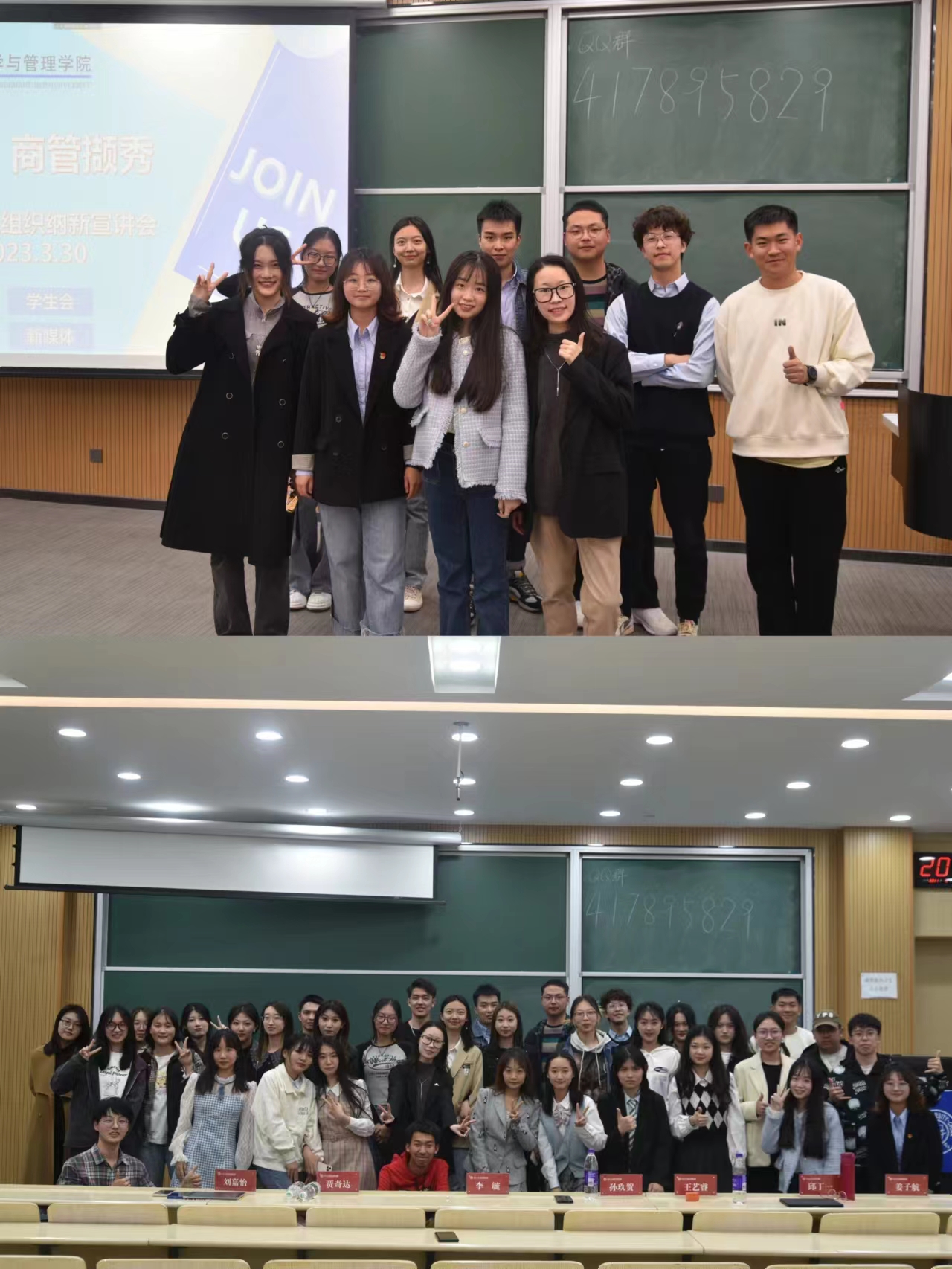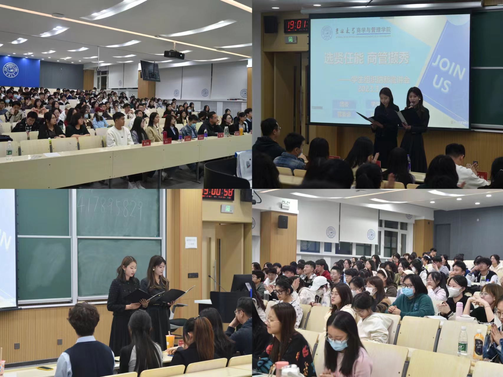 团学组织健康有序发展,发挥组织育人功能,提高学生自我管理、自我服务能力,3月29日和3月30日晚7点,分别在逸夫楼第八阶梯教室和第十六阶梯教室举行了“选贤任能,商管撷秀——成人抖音